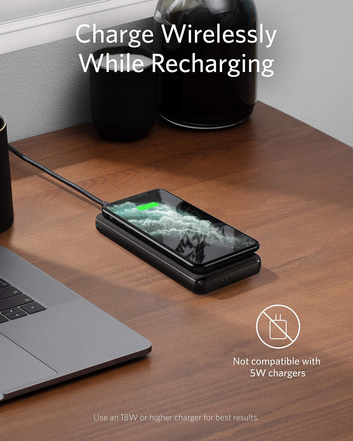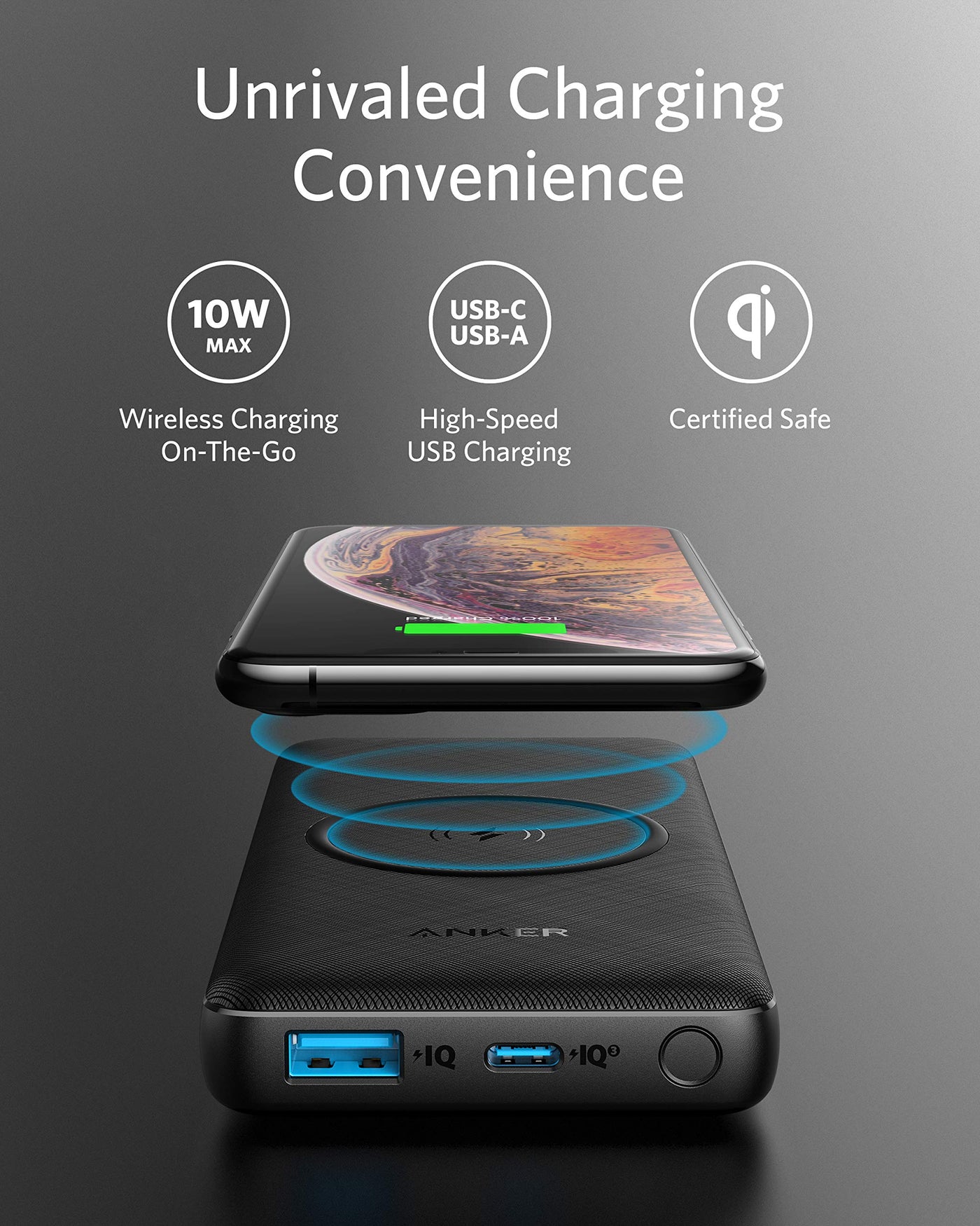 The Anker Advantage: Join The 55 Million+ Powered By Our Leading Technology. | Portable Wireless Charging: Qi-Certified To Provide Up To 10W Of Wireless Charging Power To Phones, Earbuds, Or Other Devices On The Go. | High-Speed Usb Charging: Connect To Either The Usb-C Or Usb-A Port To Give Your Phone Or Tablet A Powerful Charge Up To 18W. | Desktop Mode: Use Powercore As A Wireless Pad By Connecting To A Power Supply Via The Usb-C Port. Charge Your Device Wirelessly While Giving Powercore