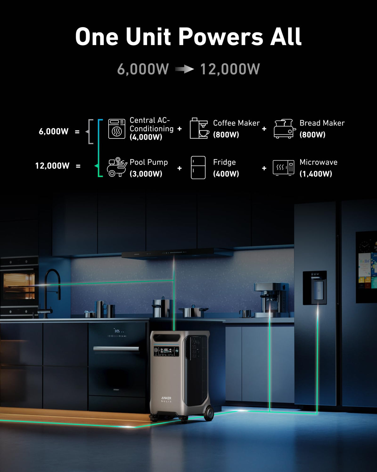 Anker Solix F3800 12000W Generators For Home Use, 7680Wh Power Station With Double Power Hub, Lifepo4 Power Station, Solar Gener