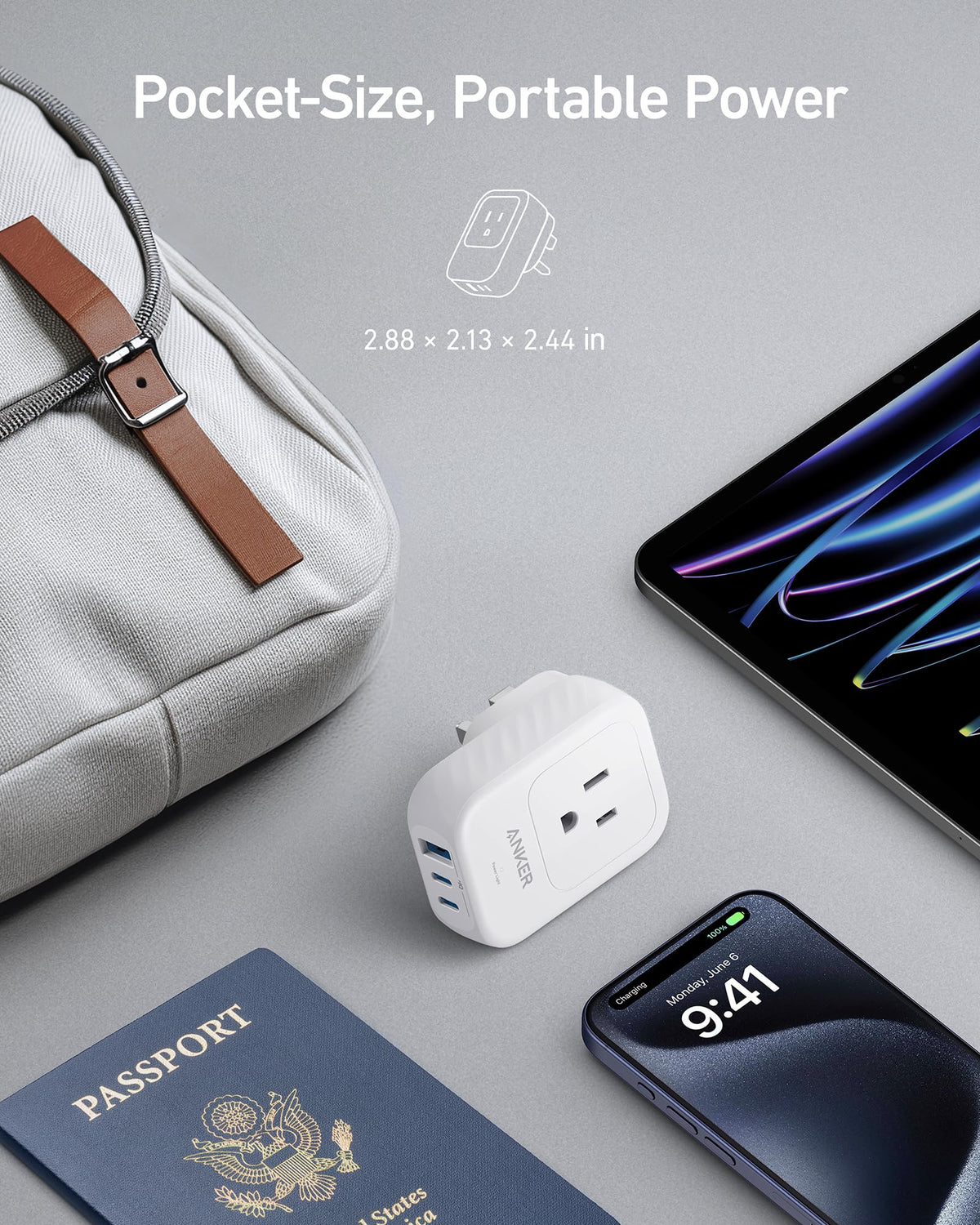 Q: How compact is the Anker travel adapter for packing?A: The Anker USA to UK International Plug Adapter is designed to be compact, measuring 2.87 inches in length and 2.13 inches in width. This makes it an ideal travel companion for your trips, fitting easily into bags without taking up much space.