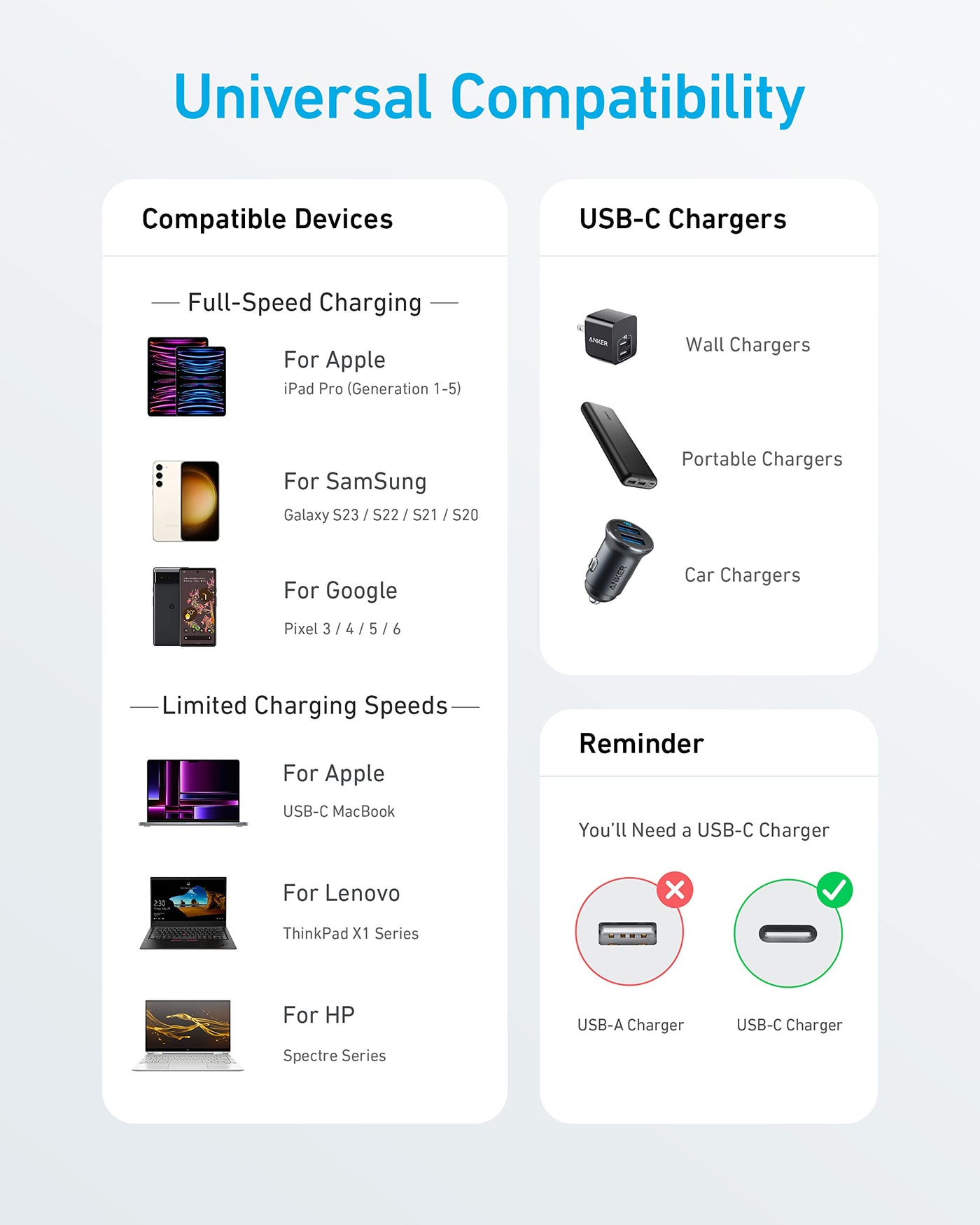 Anker Usb C Cable, 310 Usb C To Usb C Cable (6 Ft 2 Pack), (60W/3A) Usb C Charger Cable Fast Charging For Samsung Galaxy S23/S22