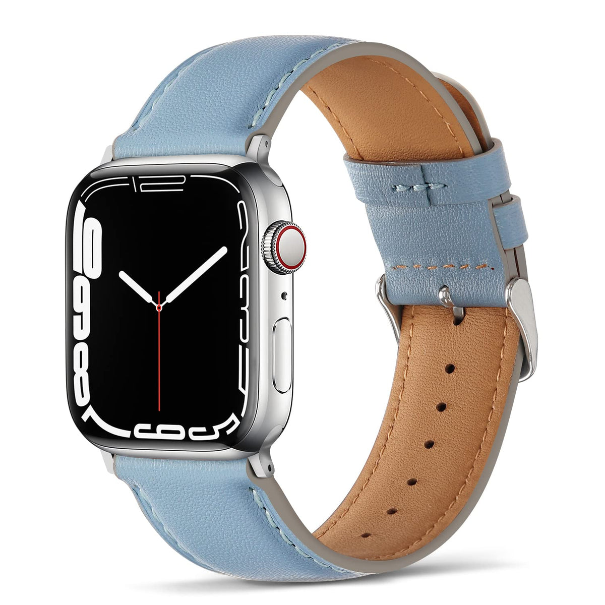 Anlinser Bands Compatible With Apple Watch Band 45Mm 44Mm 42Mm 41Mm 40Mm 38Mm For Women Men, Leather Replacement Strap Compatible With Iwatch Series 8 7 6 5 4 3 2 1, Se (45Mm44Mm42Mm, Sierra Blue)