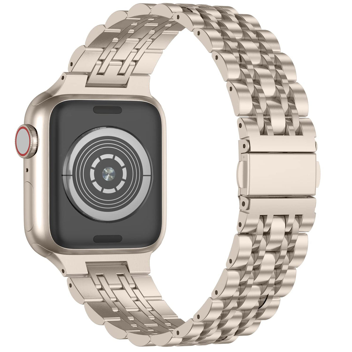 Anlinser Metal Bands Compatible With Apple Watch Band 45Mm 44Mm 42Mm For Women Men, Stainless Steel Replacement Strap Compatible With Iwatch Series 8 7 6 5 4 3 2 1, Se (Starlight)
