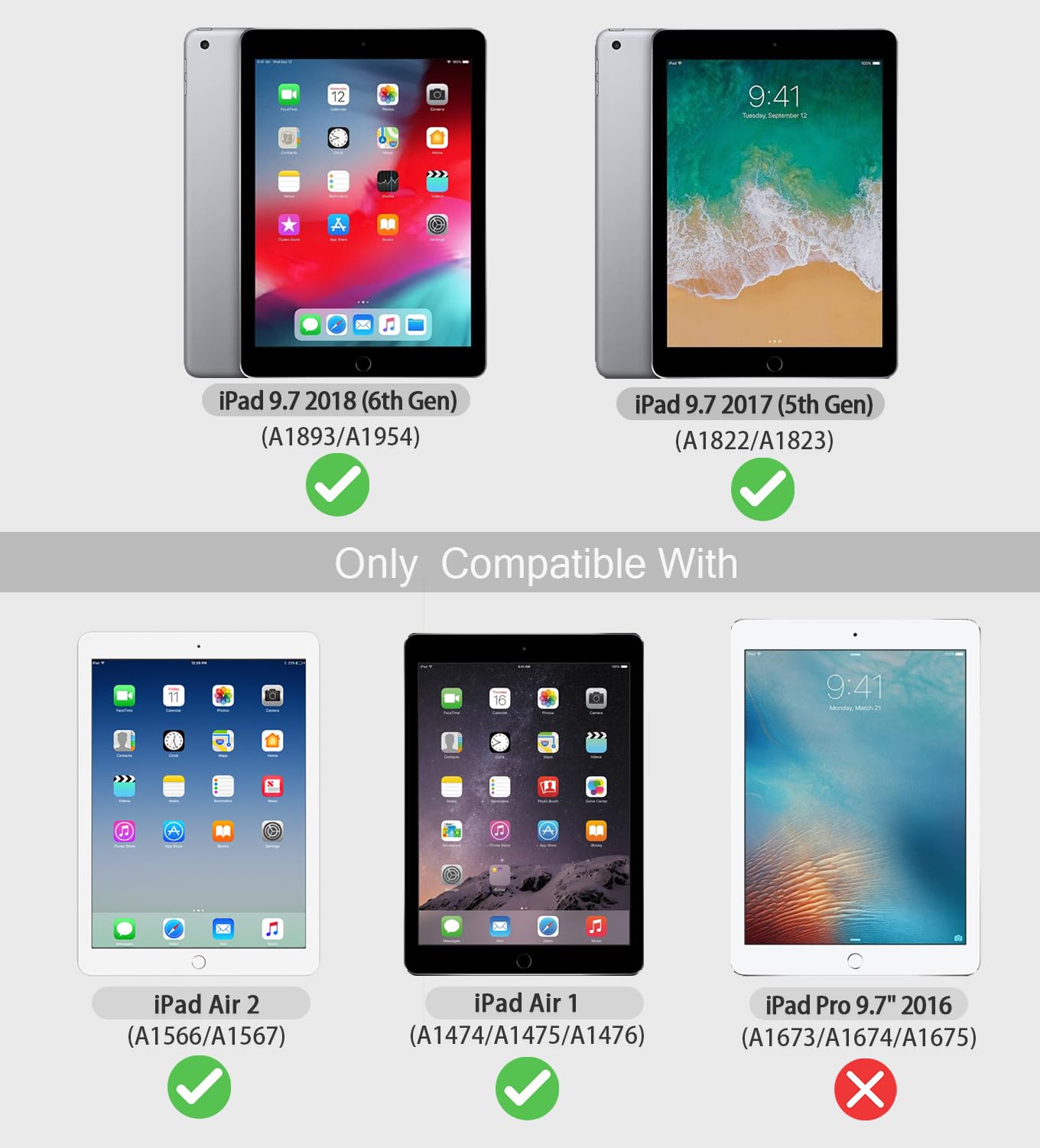 [Fit Ipad 9.7 Inch]-Compatible With 9.7 Inch Ipad 6/5 2018/2017, Air 1/Air 2. Model Number: A1893, A1954, A1822, A1823, A1566, A1567, A1524, A1474, A1475, A1476. ? Not Compatible With Ipad Pro 9.7 Inch And Ather Ipad Models. | [360