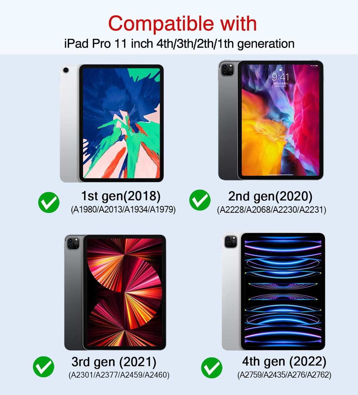 Q: Is the Anpredo case compatible with all iPad Pro 11 inch models?A: Yes, the Anpredo Case is specifically designed to fit all iPad Pro 11 inch models, including the 1st, 2nd, 3rd, and 4th generations (models A1980, A2013, A1934, A1979, A2228, A2068, A2230, A2231, A2459, A2301, A2460, A2759, A2435, A2761, A2762). However, it is not compatible with any other iPad models.
