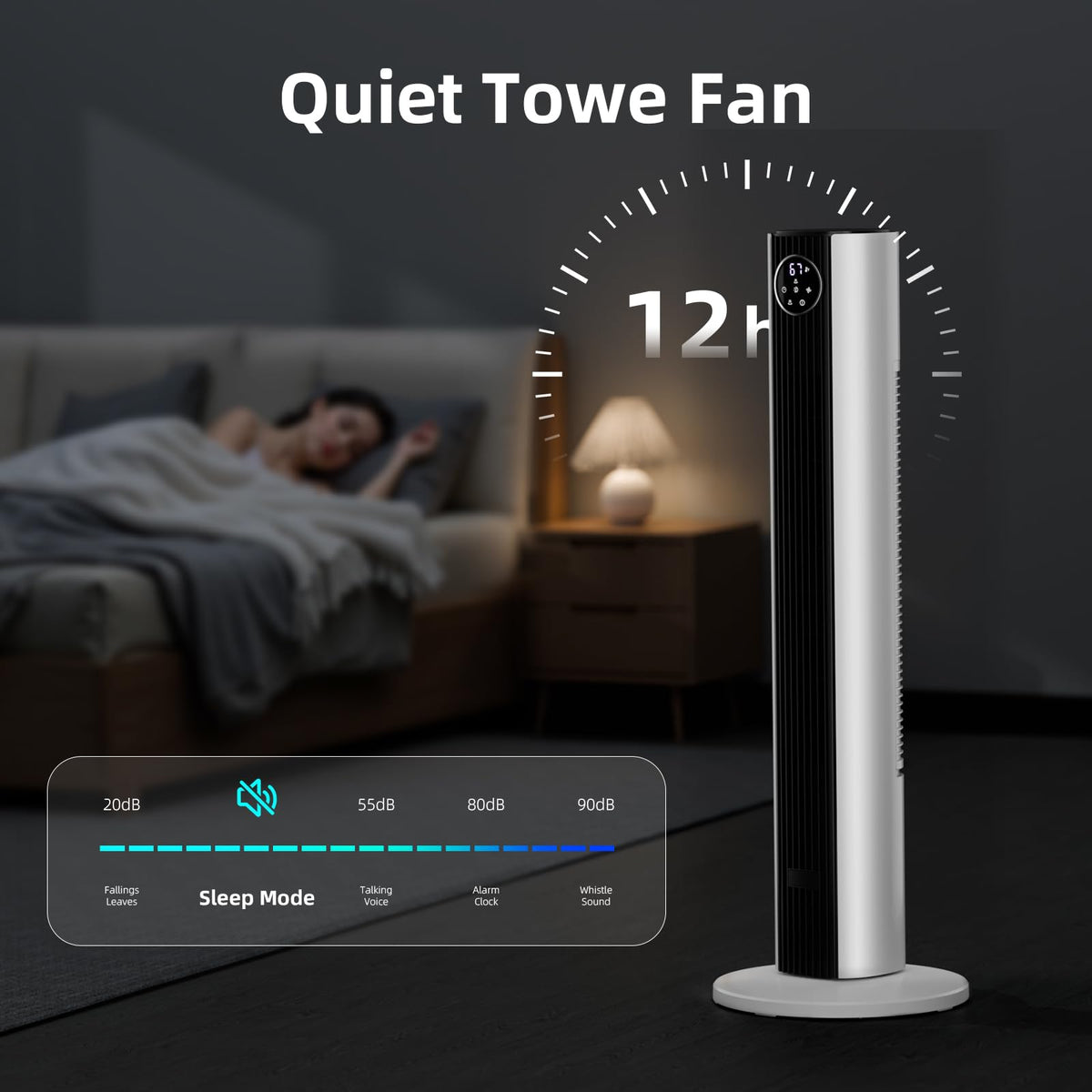 Antarctic Star Tower Fan Portable Floor Fans 85Oscillating Fan Quiet Cooling 12H Timer Remote Control Standing Bladeless Electri