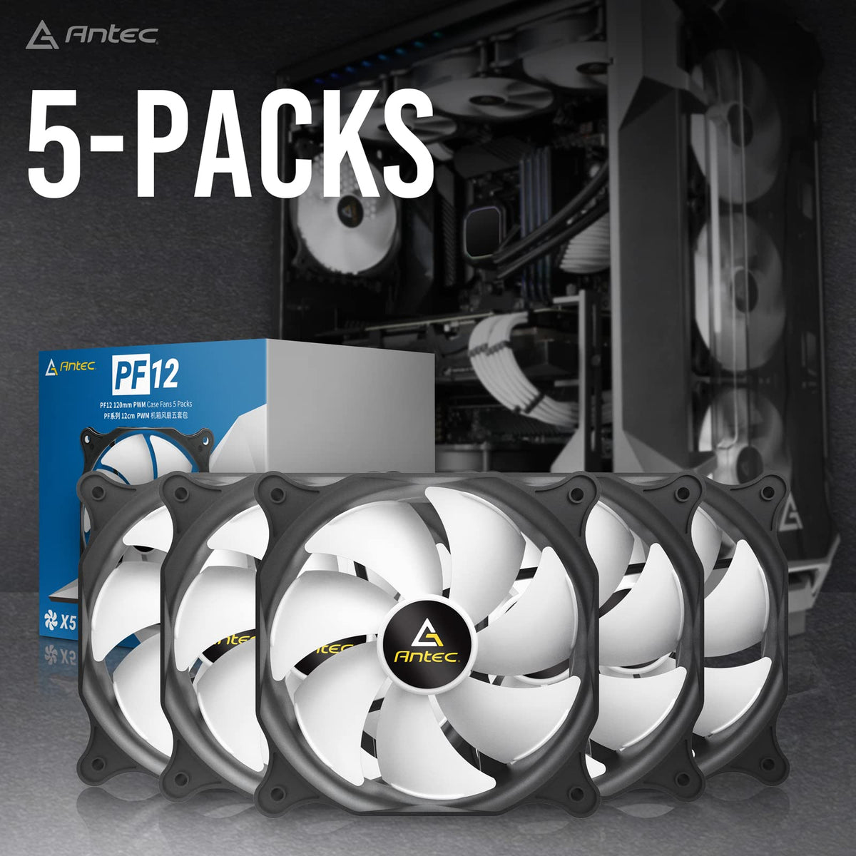 Antec Pc Fans, 120Mm Fan, Pc Case Fan,120Mm Case Fan, 3 Pin Connector, 5 Packs