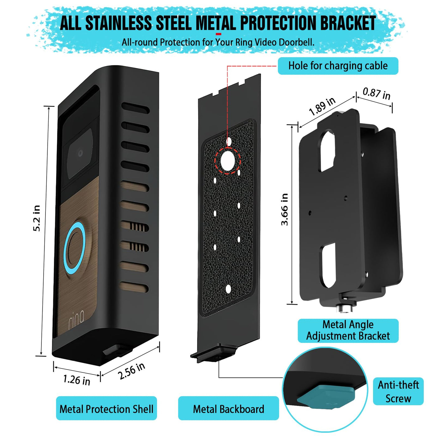 Puuuci&Nbsp;Are Committed To Creating Good Products That Help Make Your Home Electronic Products Simpler And Easier To Use. &Nbsp; Feature: Compatible With Ring Video Doorbell 1/Video Doorbell 2/Video Doorbell 3/Video Doorbell 3 Plus/Video Doorbell 4/Video Doorbell (2020 Release)/Battery Doorbell Plus (2023 Release)/Battery Doorbell Pro (2024 Release)/Battery Doorbell (2024 Release). Stainless Steel Metal. Anywhere Installation. Arbitrary Angle Adjustment. Easy Installation &Nbsp; Package: 1 X Angle Adjustment Bracket, 1 X Doorbell Case, 2&Nbsp;X Screwdriver, 5&Nbsp;X Anti-Theft Screws, 3&Nbsp;X&Nbsp;Plastic Stopper, 3&Nbsp;X&Nbsp;Fixing Screws, 1 X Instruction Manual &Nbsp; Notice: The&Nbsp;Door Bell Is Not Included.