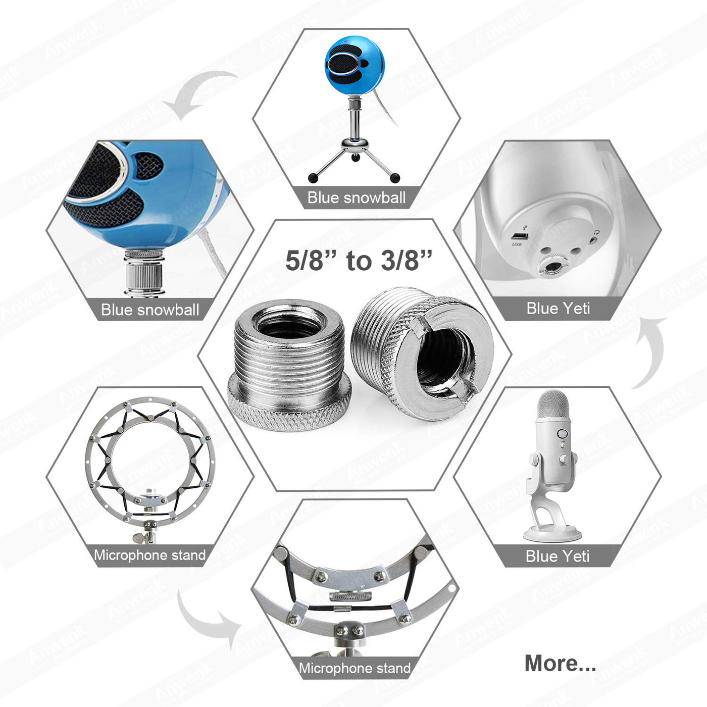 Anwenk Mic Stand Adapter 5/8 To 3/8 Adapter Male To Female Mic Screw Adapter Microphone Stand Adapter Compatible With Blue Yeti/