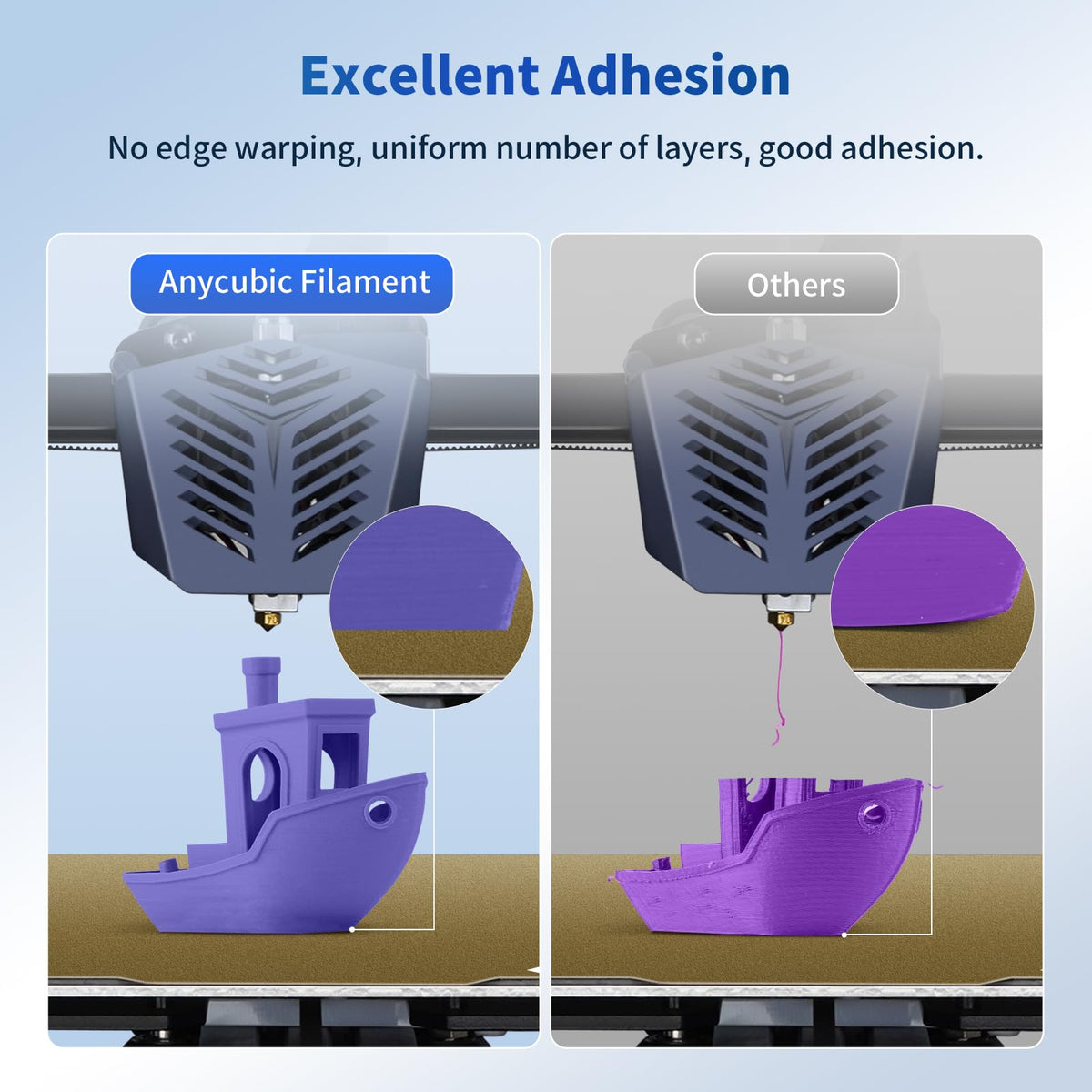 Q: What are the benefits of using ANYCUBIC PLA filament for 3D printing?A: Using ANYCUBIC PLA filament provides several benefits, including high dimensional accuracy, reduced stringing, a glossy finish, and a clog-free experience. It also offers excellent layer adhesion and minimal warping, making it ideal for high-quality prints.