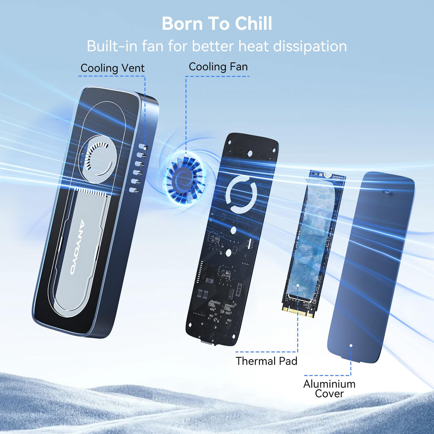 Anyoyo M.2 Nvme Ssd Enclosure, Usb 3.2 Gen 2 10Gbps Ssd Enclosure With Cooling Fan For 2230 2242 2260 2280 M.2 Nvme Ssd With M K