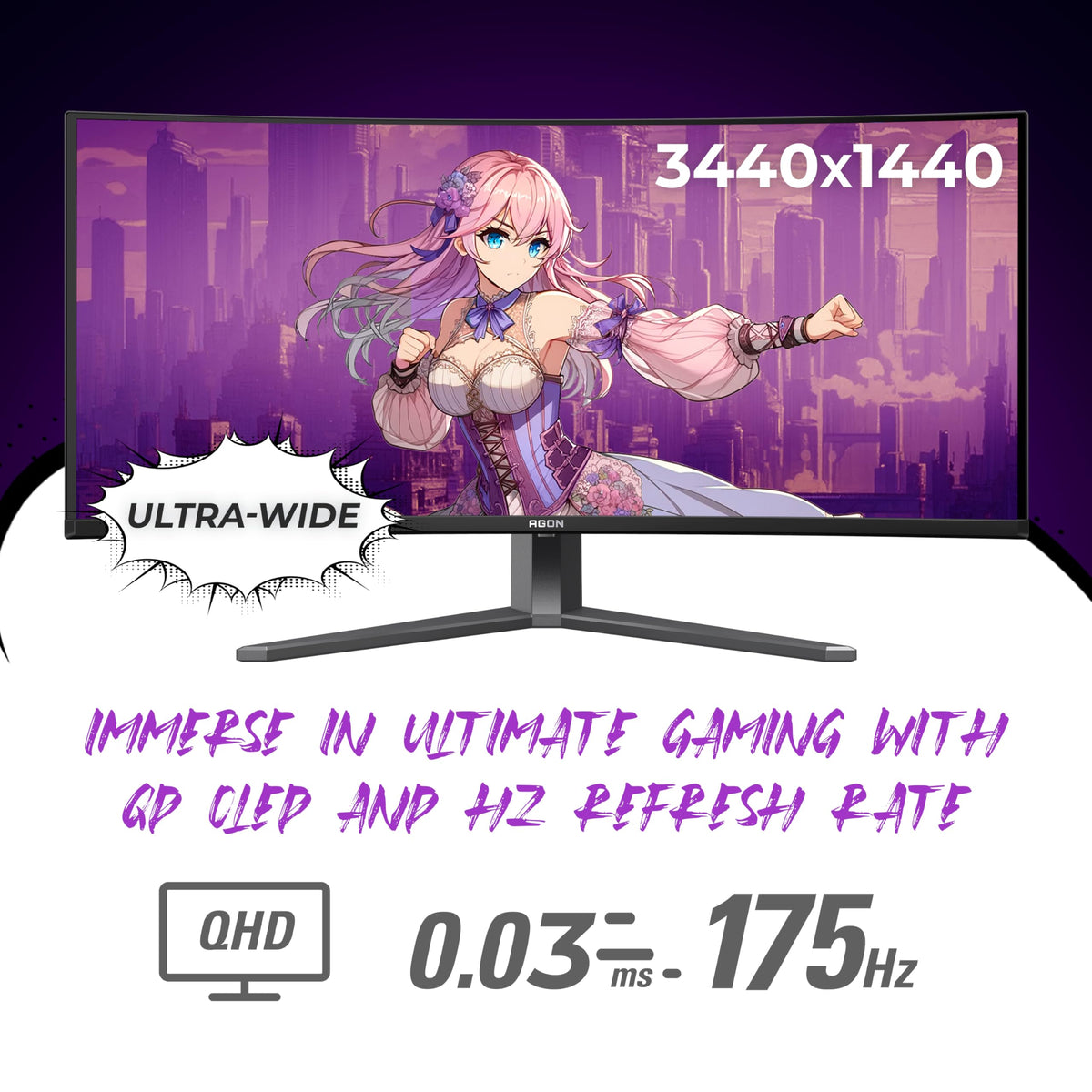 Q: What is the refresh rate of the AOC Agon PRO AG346UCD monitor?A: The AOC Agon PRO AG346UCD monitor features a refresh rate of 175Hz, ensuring ultra-smooth gameplay and reduced motion blur during fast-paced gaming.