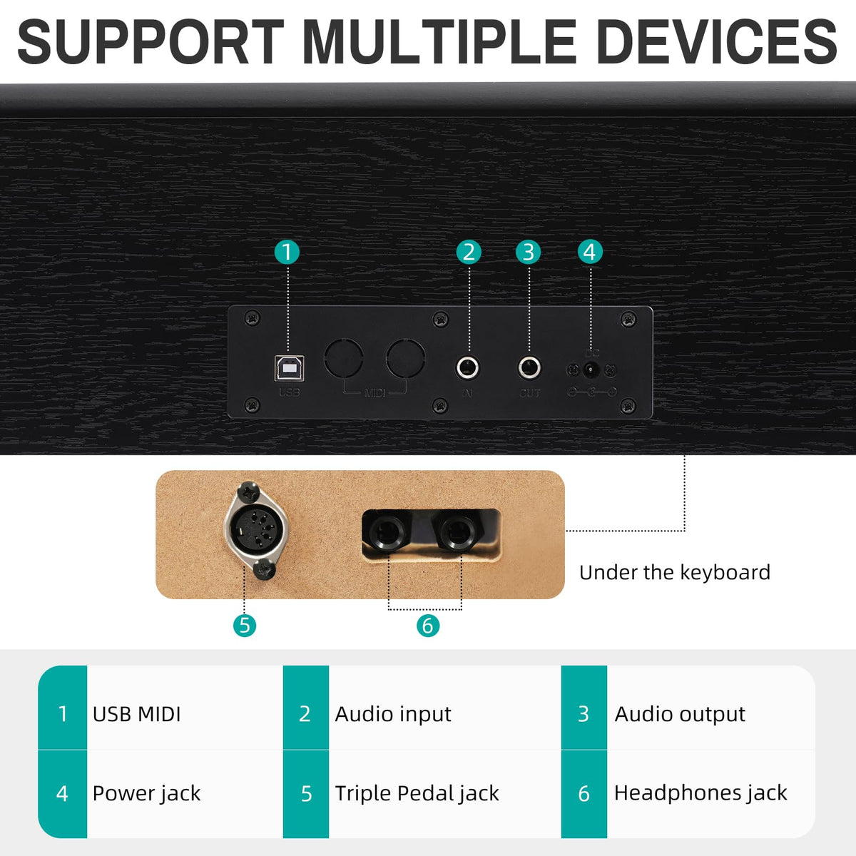 This Digital Piano Uses The Top French Dream Sound Source,Digital Sampling,For Your Performance To Bring A Lifelike Auditory Experience.88-Key Progressive Lever Hammer Keyboard,From Treble To Bass Keys Gradually Increase,Gives You The Real Touch Of Playing On The Grand Piano.