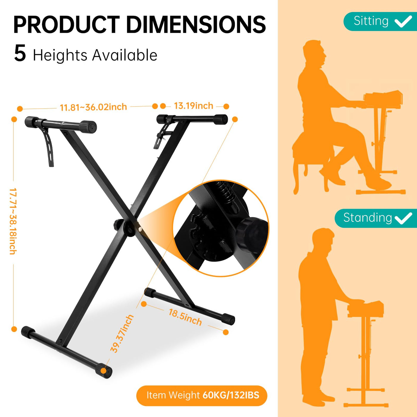 Aodsk Single X Keyboard Stand Adjustable Width & Height,Piano Stand With Locking Straps & Quick Release Mechanism Adjust Height