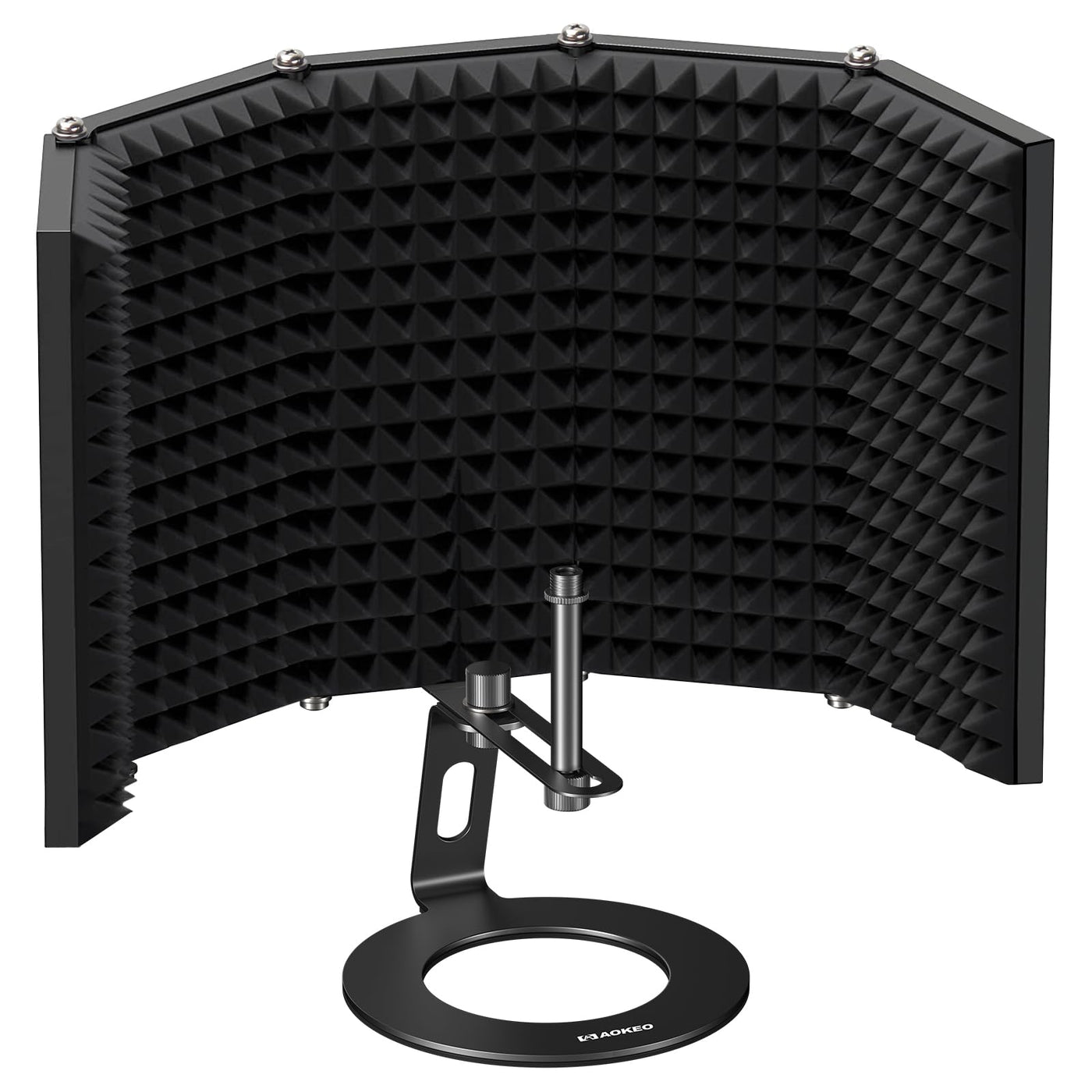 Aokeo Microphone Isolation Shield, Foldable Mic Shield With Triple Sound Insulation, Reflection Filter With 3/8 And 5/8 Mic Threaded Mount For Recording Studio, Podcasts, Singing, And Broadcasting