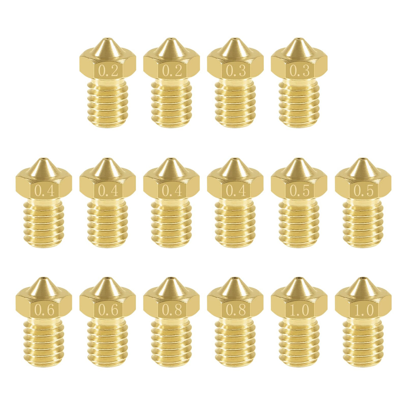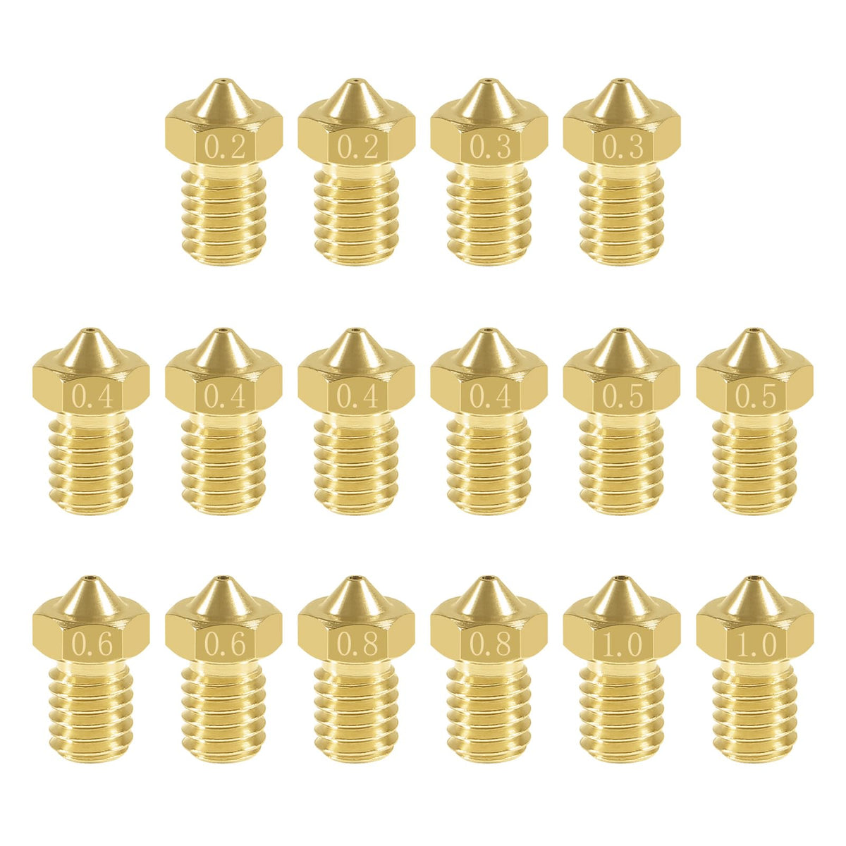 Aokin 16 Pcs Extruder Nozzles 3D Printer Brass Nozzles For E3D V5 V6 0.2Mm 0.3Mm 0.4Mm 0.5Mm 0.6Mm 0.8Mm 1.0Mm For 1.75Mm Filame