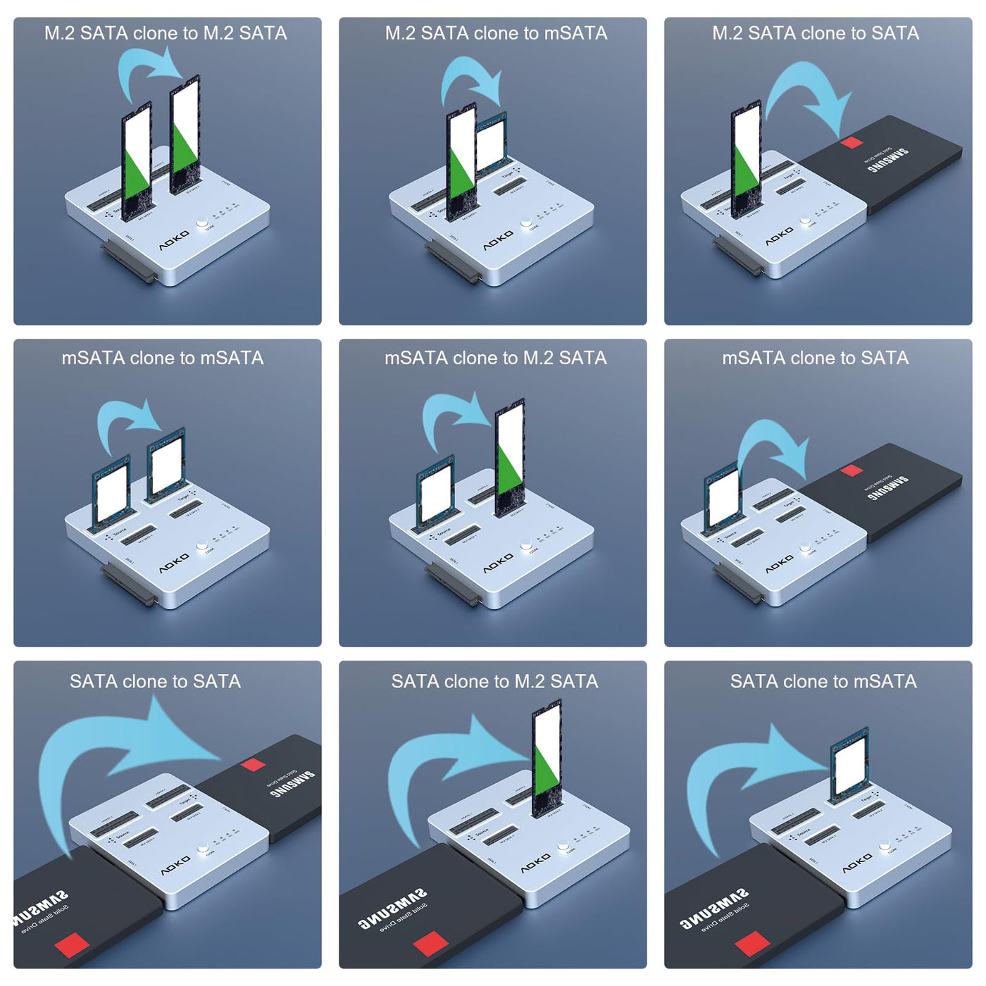 Wide Compatibility Of Aoko Sata Multi Hard Drive Reader Adapter : Support Sata 2.5/3.5-Inch Hdds/Ssds; Compatibility With 30X30Mm 51X30Mm Mini Sata Ssds And (B+M Key) M.2 Sata Ssds (Not Compatible With Nvme And Ide Drives)