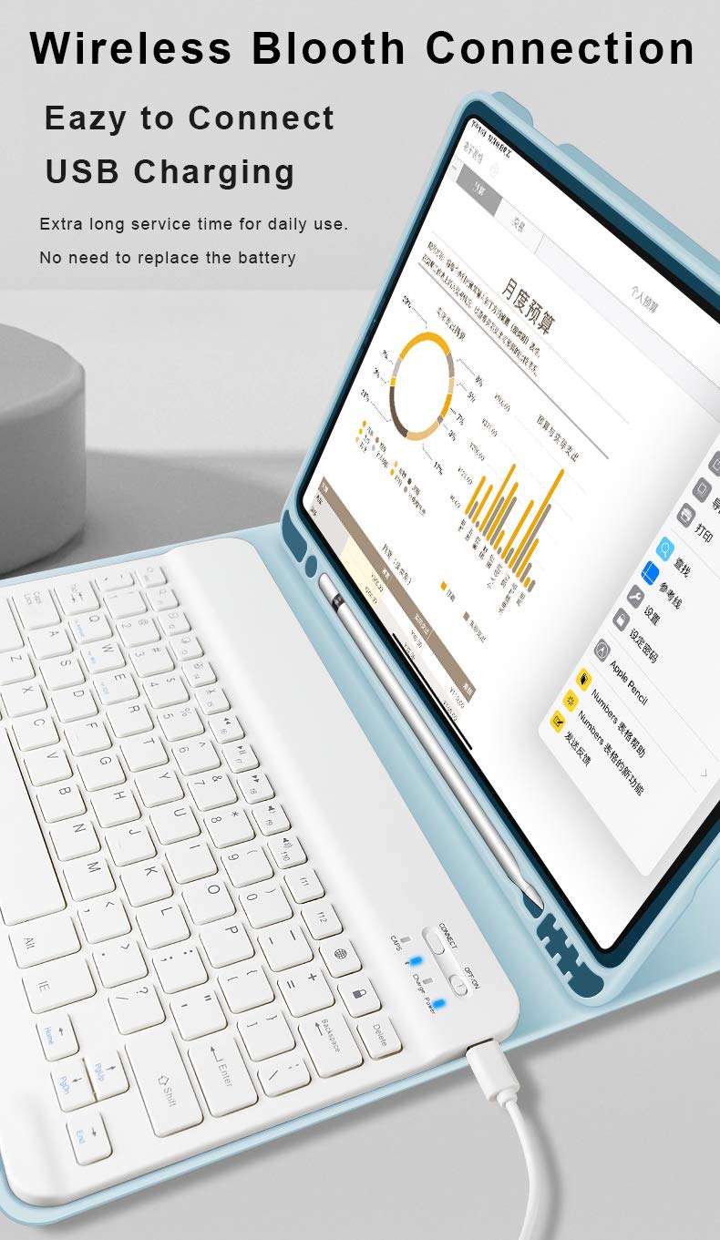 Q: How does the Bluetooth keyboard work with the case?A: The Aoub Case features a magnetic compact wireless Bluetooth keyboard that easily attaches and detaches from the case. Once connected, it allows for comfortable typing, similar to a laptop, and includes a built-in rechargeable battery for convenience.