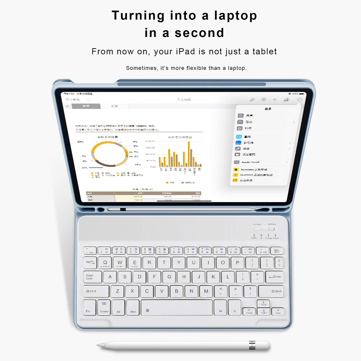 Aoub Case For Ipad 6Th/5Th Generation 9.7 Inch, Ipad Air 2, Ipad Air, Stand Folio Detachable Wireless Bluetooth Keyboard Cover Soft Tpu Back Case With Pencil Holder For Ipad 9.7 , Sky Blue