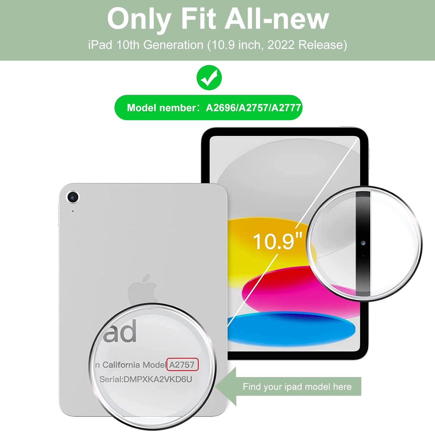 ?New Ipad 10Th Generation Case With Keyboard?- Keyboard Case Designed For Ipad 10Th Generation 10.9 Inch 2022 (Model Number: A2696/A2757/A2777). It Is Not Compatible With Any Other Models. Please Check The Model Number Starting With ''A'' On The Back Of Your Ipad Before Purchasing. | ?Bluetooth Wireless Keyboard Case?- Magnetic Compact Wireless Bluetooth Slim 6.2Mm Keyboard With 10M Range, Easy To Install And Remove, Can Be Securely Attached To The Case, Instantly Become A Portable Laptop. Including Volume And Media Controls, Brightness Adjustment, And More. Keyboard Design Using Scissor-Cross Low Profile Structure, Enhance The Tactility Of Typing, Let You Faster And Easier To Learn And Work. Easily Prop Up Your Ipad With Standing Position For Enjoy The Most Comfortable Flexible Angles. | ?Quickly Become A Laptop?- This Ipad Keyboard 10Th Generation Will Easily Turn Your Ipad Into A Powerful Laptop. Easy To Use And Portable, Suitable For Meetings, Travel Or Home, It Is A Good Companion For Work And Study. This Is A Great Gift Option For The Loved Ones On Your Holiday Gift Wish List. Can Be Given To Your Familes Or Relatives And Friends As A Birthday, Christmas, Thanksgiving, Mother'S Day, Father'S Day Gift. | ?Built-In Pencil Holder?- The Built In Pencil Holder Can Hold Your Apple Pencil In Place Tightly, Conveniently Store And Remove Your Pencil. Effectively Prevent Falling Out, Reduce The Likelihood Of Losing Your Pencil (Apple Pencil Is Not Included). | ?Rechargeable & Long Life Battery?- Our Ipad Case With Keyboard Built-In Large Capacity Battery, More Energy Saving And Lower Consumption. It Can Be Fully Charged In 2 Hours With Type-C Charging Cable, Don'T Need To Replace Battery, Ensure You Can Working For 230 Hours. | ?Service Support?- Provide 30 Days Return And Exchange Service. If You Have Any Questions, Please Contact Us By Email. Aoub Customer Service Team Is Dedicated To Serving You. Package Including: 1X Ipad 10Th Generation Case, 1X Wireless Keyboard, 1X Type-C Charging Cable, 1X User Manual. (Pen Not Included!)