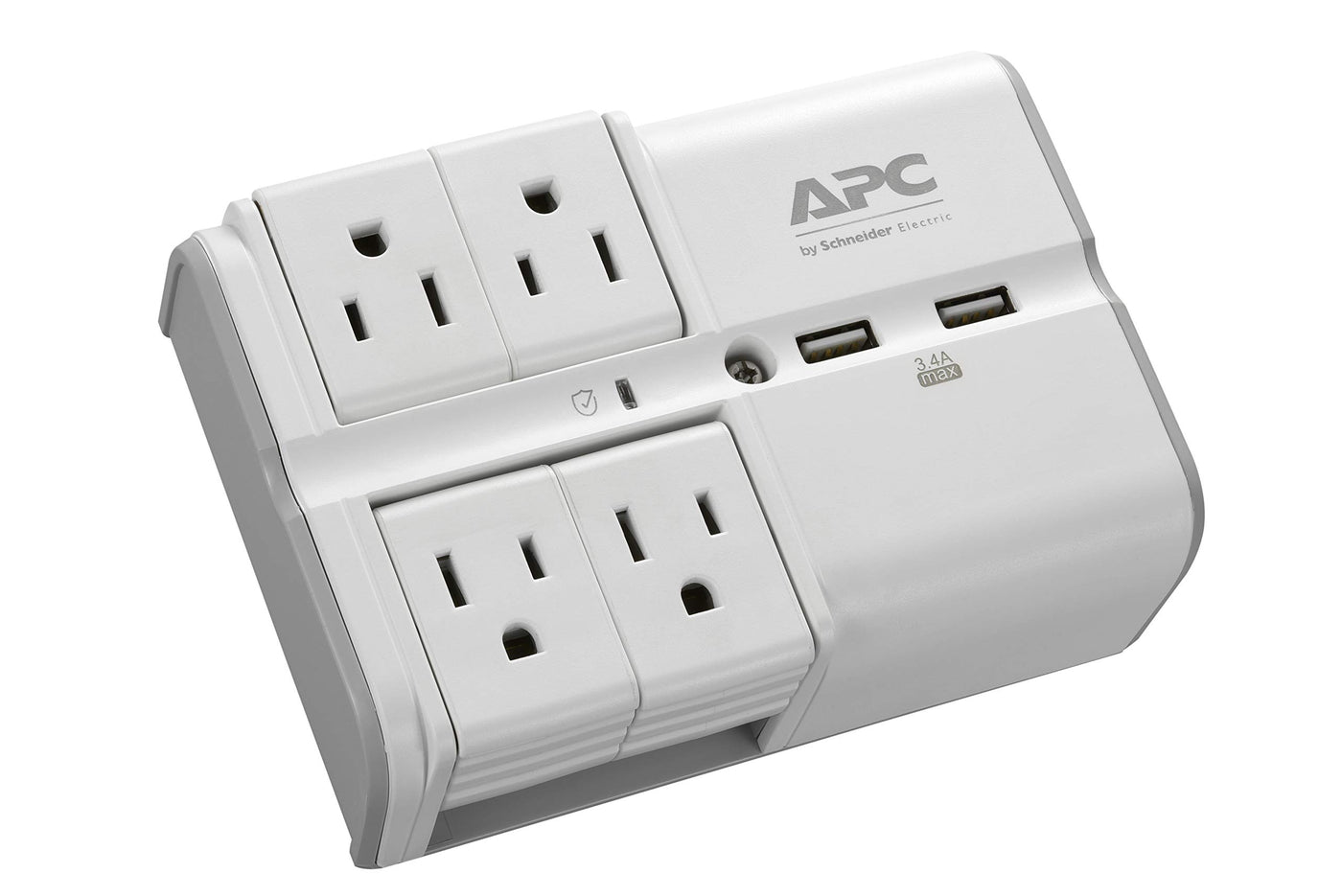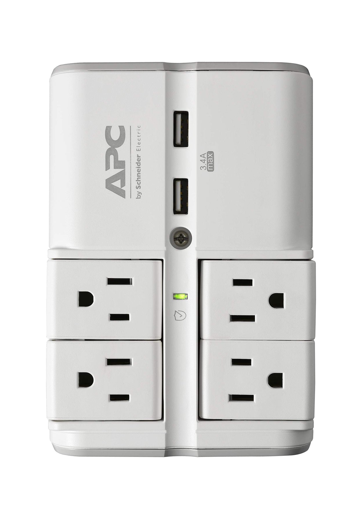 Apc Wall Outlet Surge Protector With Usb Ports, Pe4Wru3, (4) Rotating Multi Plug Outlet, 1080 Joule Surge Protection
