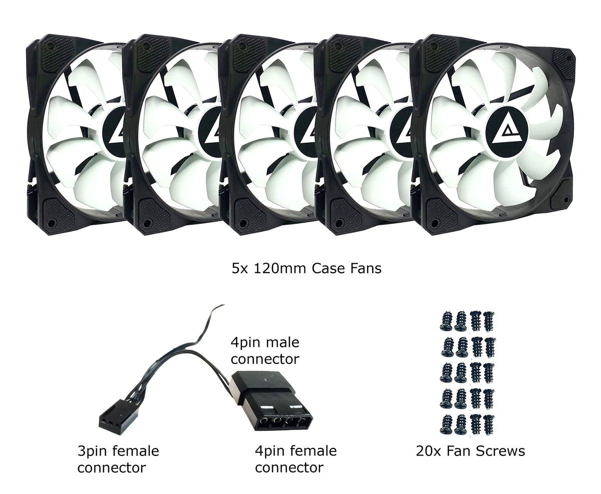 Apevia 512S Wb 120Mm 4Pin Molex & 3Pin Motherboard Black/White Case Fan (5 Pk)