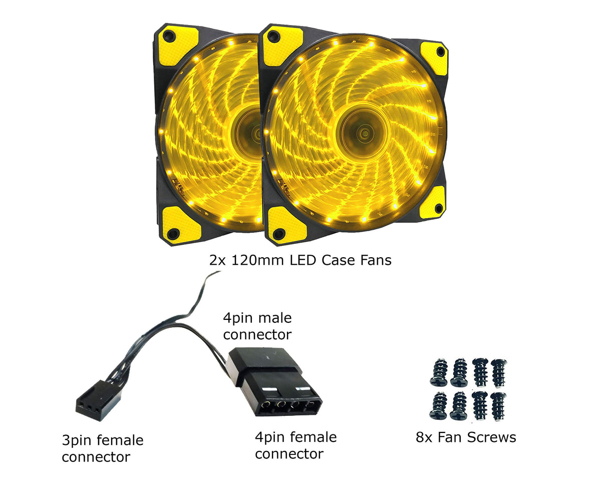 Apevia Af212L Syl 120Mm Yellow Led Ultra Silent Case Fan W/ 15 Yellow Leds & Anti Vibration Rubber Pads (2 Pk)