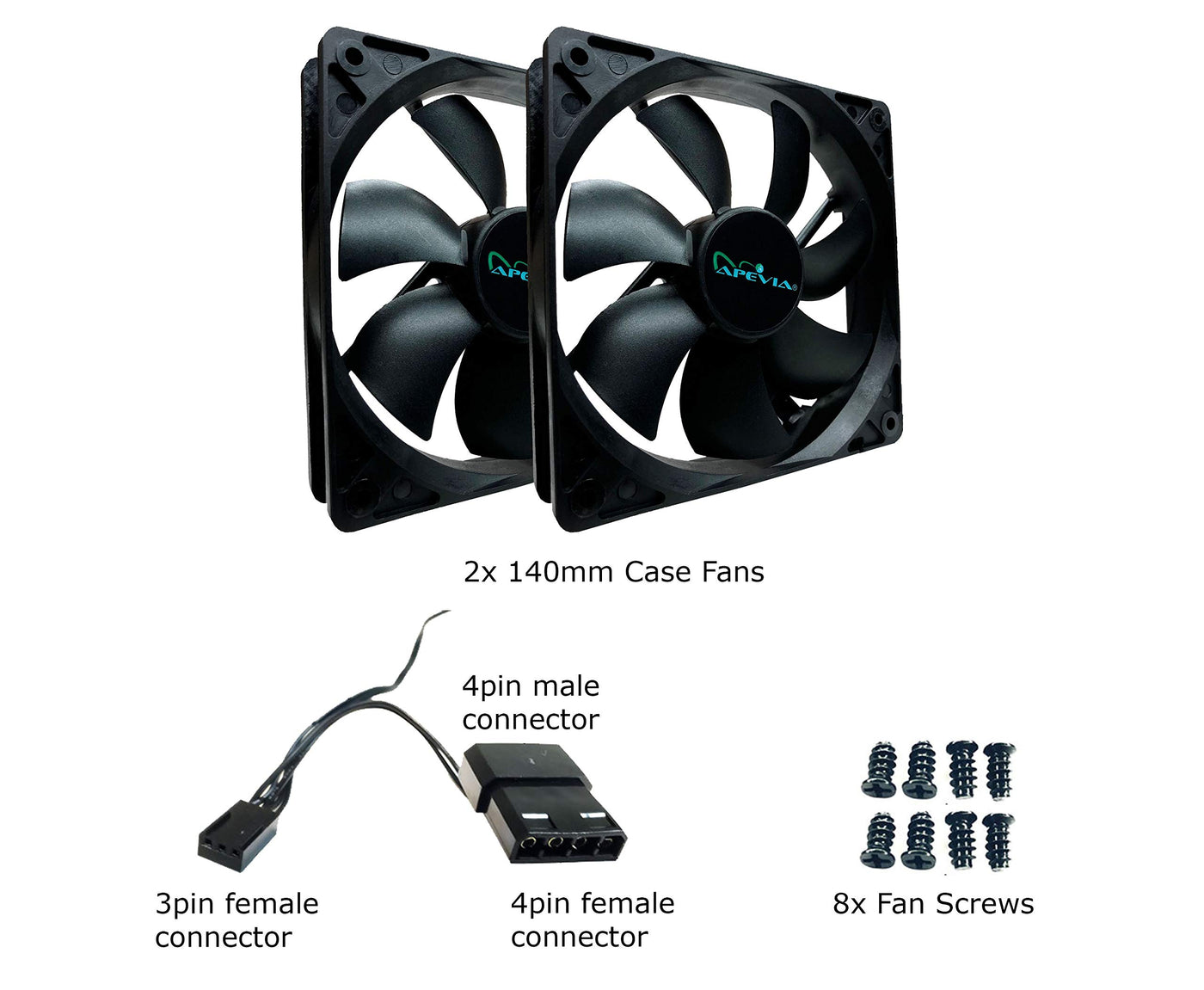 Apevia Cf214S-Bk 140Mm 4Pin Molex & 3Pin Motherboard Black Silent Case Fan (2-Pk)
