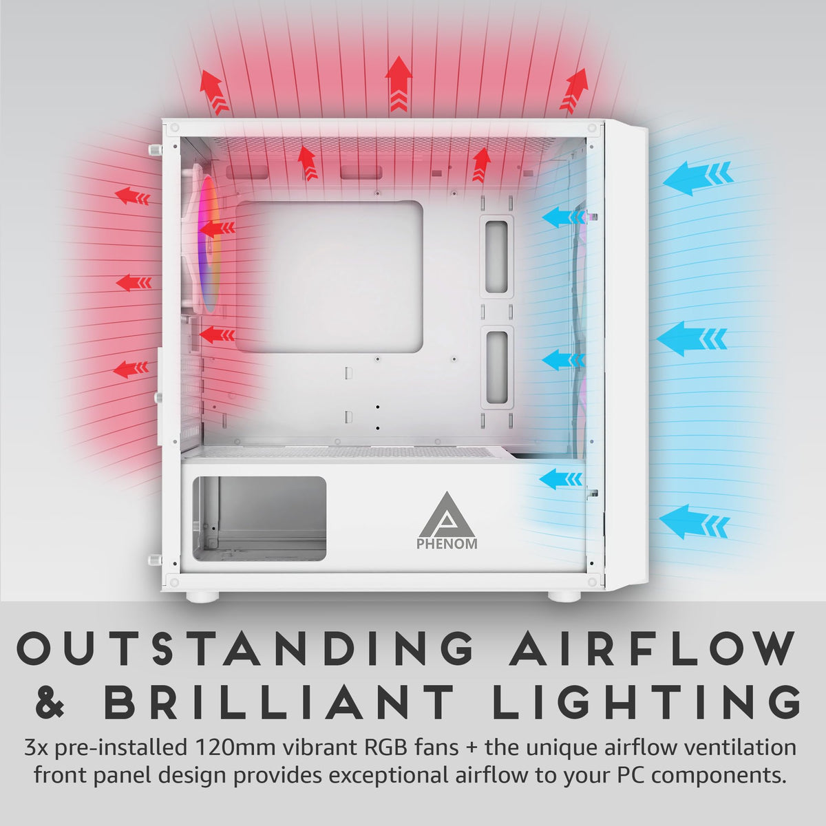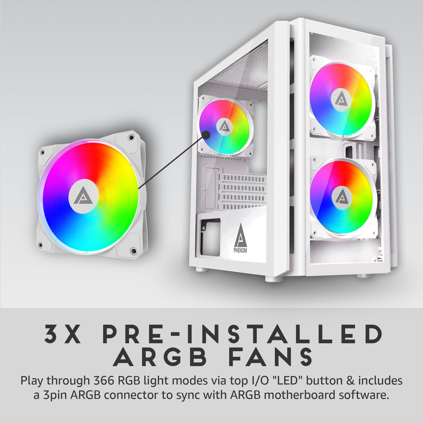 Apevia Phenom Wh Phenom Micro Atx Gaming Pc Case W/ 3X 120Mm Argb Fans, 366 Rgb Light Modes, 2X Tempered Glass Panels, Front Pan