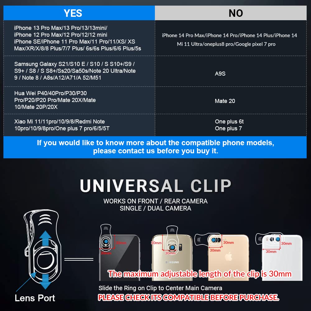 Box Contain: 1 X 18X Telephoto Lens 1 X 198&Deg; Fisheye Lens 1 X 0.63X Wide Angle Lens&15X Macro Lens 1 X Phone Holder 1 X Flexible Tripod 3 X Lens Cover 2 X Lens Clip 1 X Rubber Eyecup 1 X Cleaning Cloth