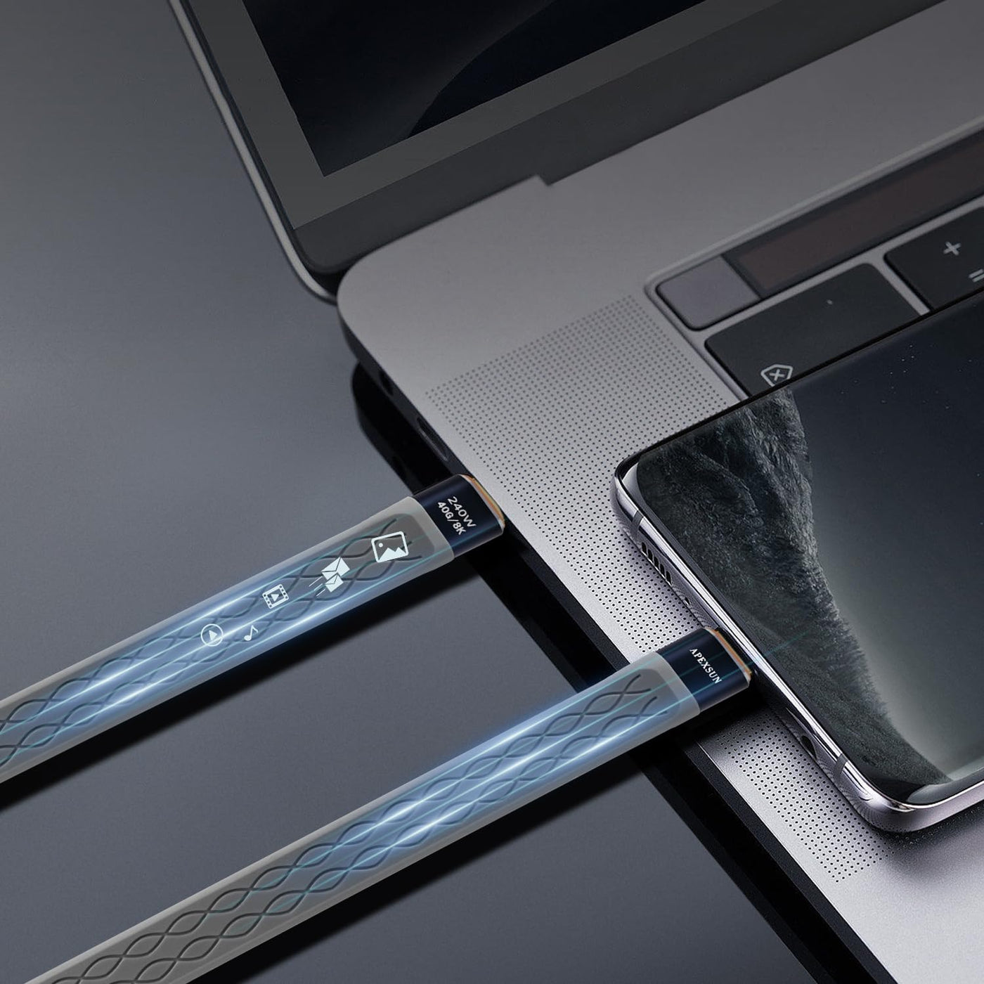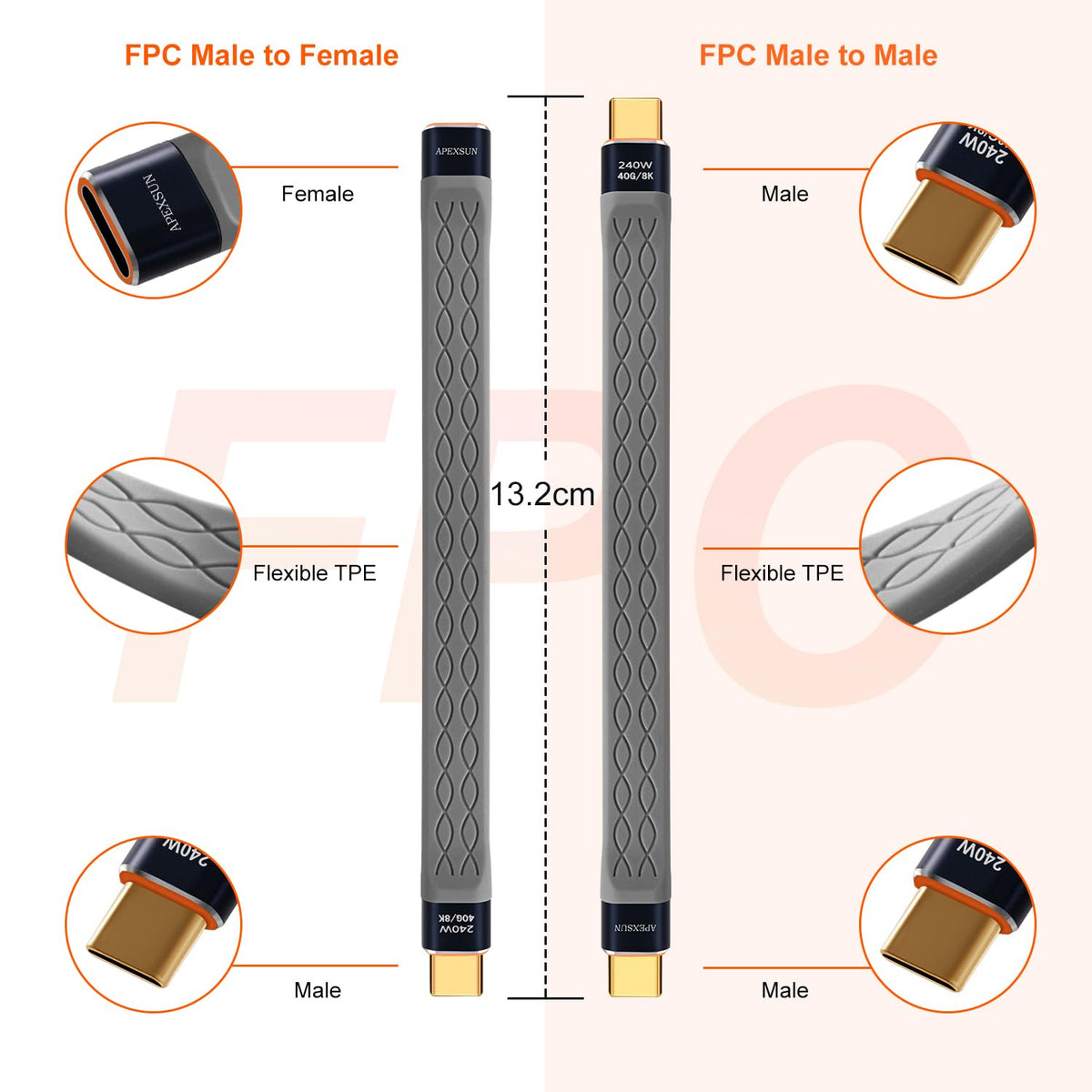 Apexsun (2 Pack Fpc 0.4Ft Usb C Cable,Usb C To Usb C Flexible Cable Support Thunderbolt 4/3,Usb4,240W Charging,8K Display,40Gbps Data Transfer For External Ssd, Egpu,Docking,Macbook,Pad, Phone