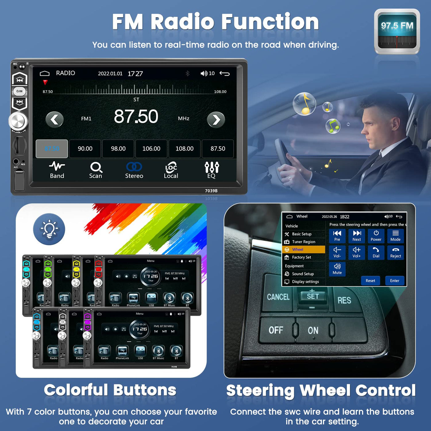 Features: Bluetooth Car Stereo Is Compatible With Apple Carplay, Android Auto, And Mirror Link Single Din Chassis Car Stereo With 7 Inch Touchscreen, With 1024*600 Resolution Single Din Touchscreen Car Stereo Supports Bluetooth Hands-Free Calls And Music Playing Fm Radio Receiver For Listening To Real-Time Stations, Such As News, Weather Forecast, And Music Support Usb Playback And Usb Phone Charging, With Aux Input And Sd Card Slot Coming With External Microphone, Remote Control And Backup Camera Specification: System: Wince Model: 7039B Size: 7.0 Inches Voltage: 12V Audio Amplifier: 7388 Bluetooth: 4.0 Screen Resolution: 1024*600 Output Power: 4*45W Usb Interface: Usb2.0 Reversing Input: Cvbs Radio Range: Fm 87.5-108.0Mhz (Europe) Working Temperature: -10? ~ 60? Audio Format: Mp3/Wma/Wav/Ape/Flac Video Format: Mkv/Avi/Ts/Tp/Mp4/M4V Max Bit Rate (50Mbps-80Mbps) Languages: English, French, Spanish, Russian, Italian, Portuguese, German, Polish, Turkish, Arabic, Hebrew Package Included: 1 X Single Din Apple Carplay Stereo 1 X Backup Camera 1 X Power Cable 1 X Horn Cable 1 X Remote Control 1 X Microphone 1 X User Manual
