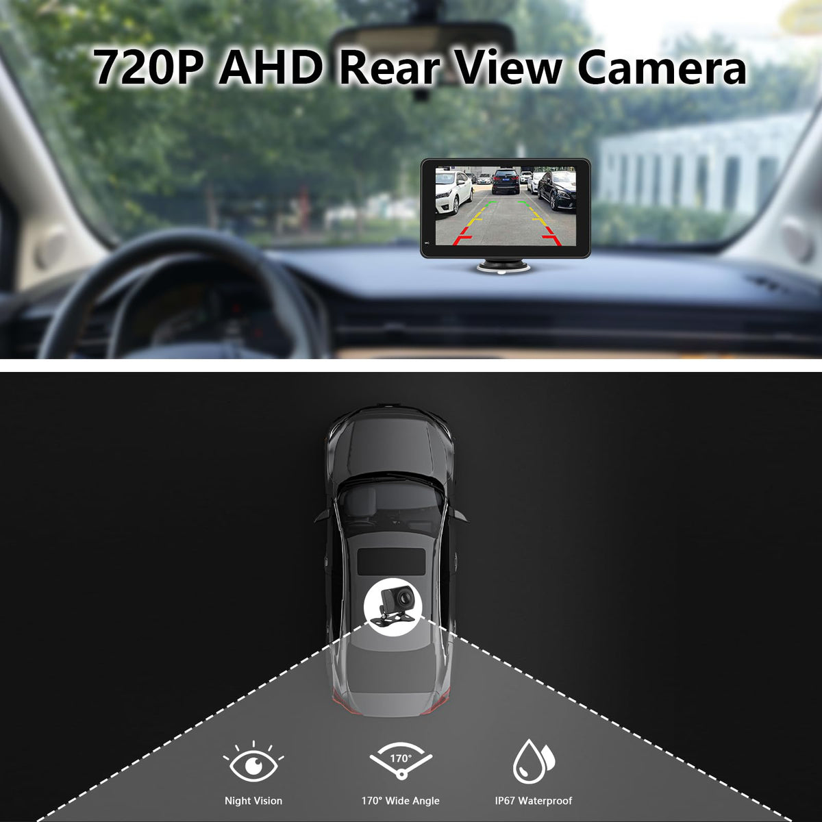 Q: What are the key features of the 7 Inch Portable Touch Screen Car Stereo?A: This car stereo features wireless Apple CarPlay and Android Auto, allowing for seamless navigation, music streaming, and hands-free calling. It also includes a 720P AHD rear view camera for safer reversing, easy installation without special adapters, and compatibility with a wide range of vehicles.