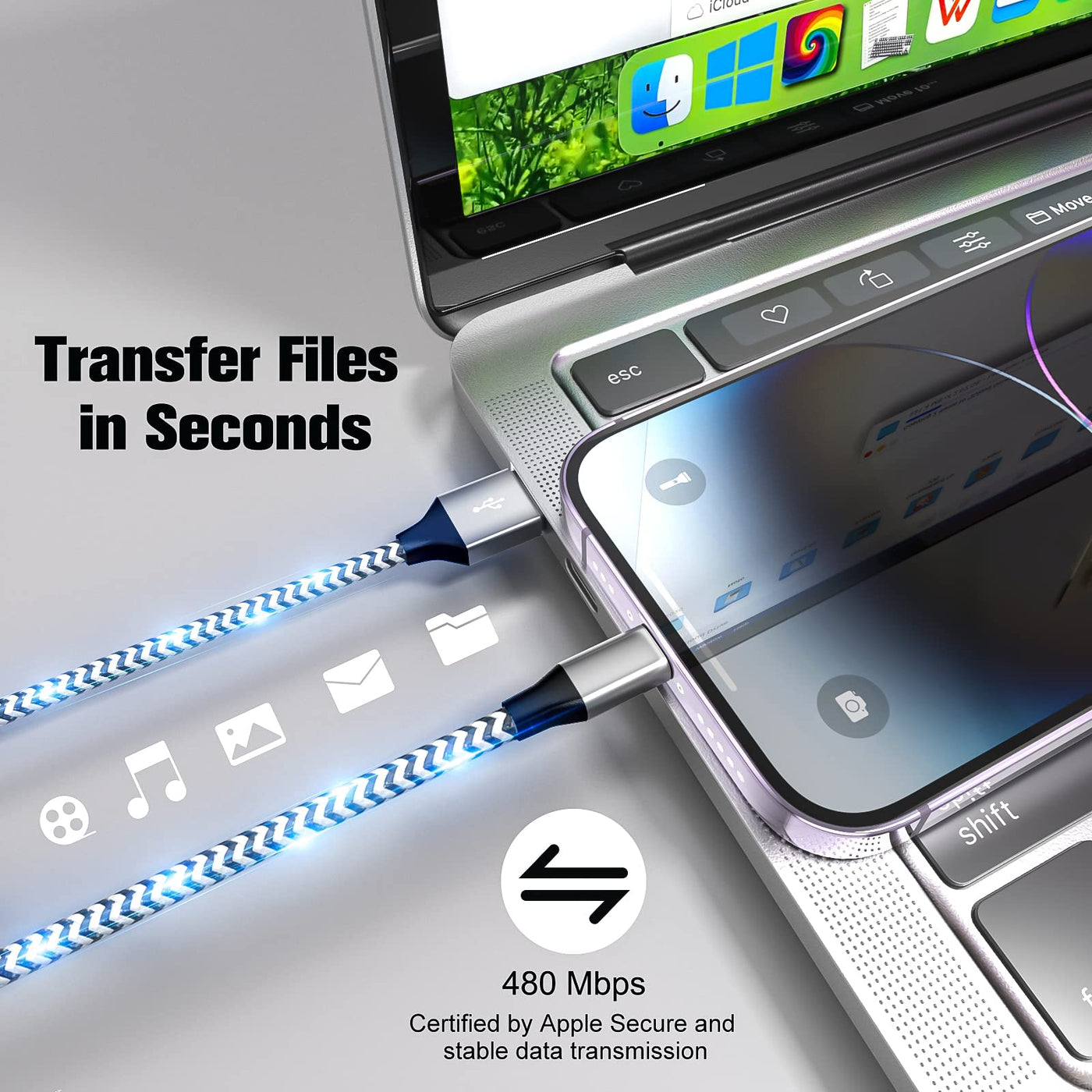 ?Warranty?Premium 2.4A, 6 Feet Long Fast Charging Usb To Lightning Cable, Convenient For Charging Your Devices In Conference Room, Office, Bedroom, Couch, Driving, Traveling, If You Have Any Questions, Please Feel Free To Contact Us. Our Service Team Will Provide You With A Satisfactory Solution Within 24 Hours. | ?Apple Mfi Certification?Colorful Usb Cable Pass Apple'S Strict Test, Safer Charging. Apple'S Official Certified Chip Supports All Ios Versions, Guarantees No Pop-Up Warning Messages, Features Fast Charging, Overcharge Protection, Battery Protection, And Secure And Fast Data Transfer. | ?Fast Charging And Data Sync?With The Latest Original Chip And High Quality Thick Copper Cable, It Achieves Fast Charging Without Hurting Your Phone, 25% Faster Than Ordinary Cables, And Supports Data Transfer Speed Up To 480Mbps, You Can Easily Transfer Files, Music And Photos Between Iphone And Macbook In Seconds. | ?Durable?The Charging Cable Is Made Of High-Density Nylon Braided Exterior And Built-In Bulletproof Fiber Core Combined With 30,000 Times Bending Life, More Durable, Stronger And Avoid Tangling. The Reinforced Connector Process Has A 20,000+ Plug Life To Withstand Every Day Connection Needs And Long-Term Use. | ?Compatibility?Mfi Certified Usb To Iphone Cable Supports Apple 14, 13, 12, 11, Xs,Xr,X,8Plus,8 Fast Charging, Apple 7,6. Normal Charging. And Support Ipad, Ipod Touch Series.