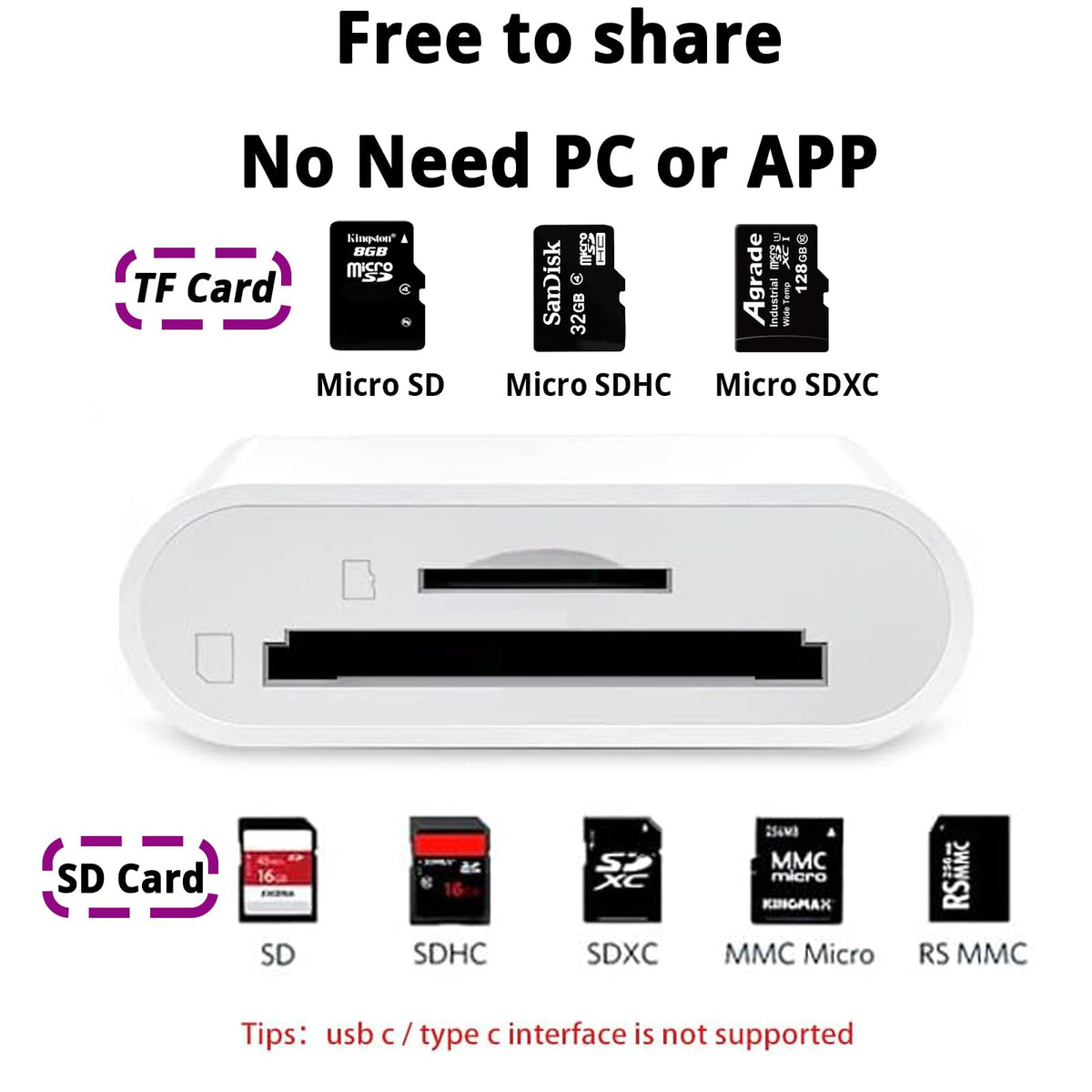 (Apple Mfi Certified) Lightning To Sd Card Camera Reader For Iphone Ipad, 2 In 1 Dual Card Slot Supports Sd And Tf Card, Portabl