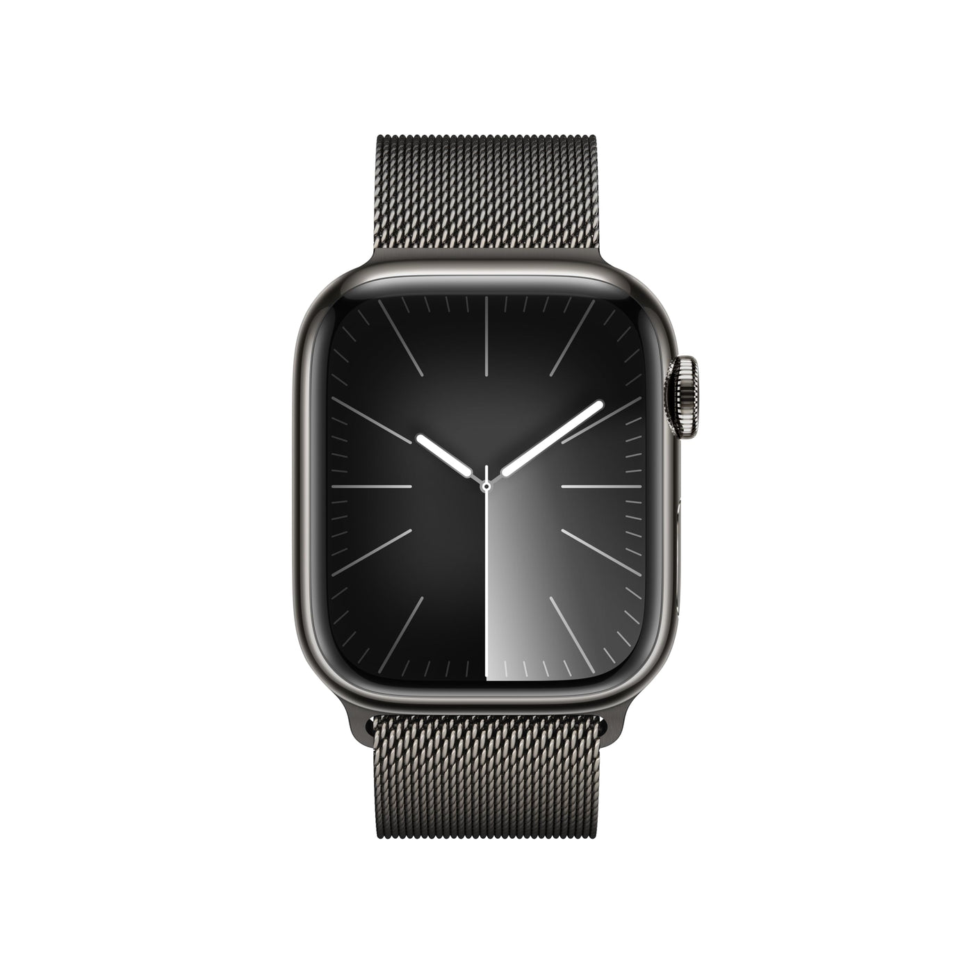 Apple Watch Series 9 [GPS + Cellular 41mm] Smartwatch with Graphite Stainless Steel Case with Graphite Milanese Loop. Fitness Tracker, ECG Apps, Always On Retina Display