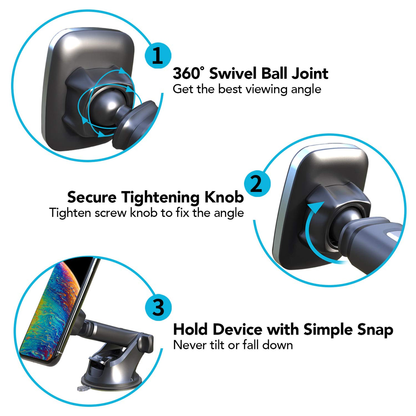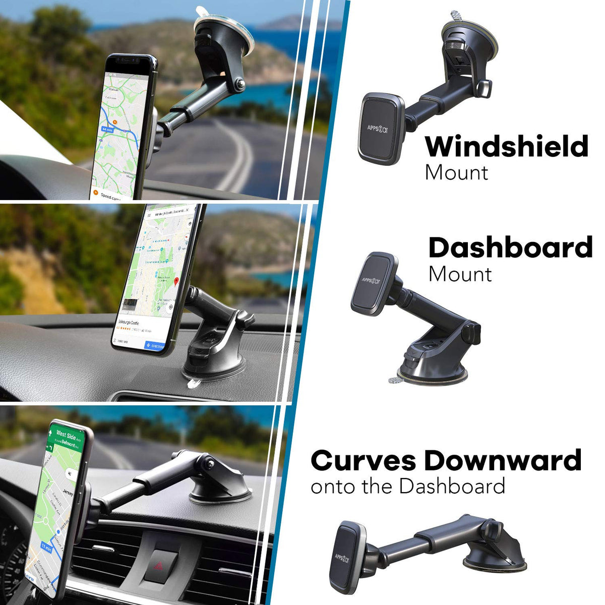 Apps2Car 3-In-1 Car Phone Mount Magnetic Dashboard Windshield Air Vent Mount Phone Holder For Car Universal Car Phone Holder Wit