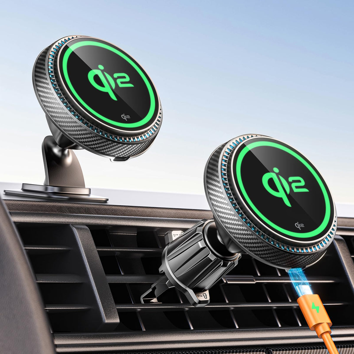 Apps2Car For Qi2 15W Magsafe Car Mount Charger, Qi2-Certified Magsafe Car Charger, Air Vent/Dashboard Magnetic Phone Holder Car