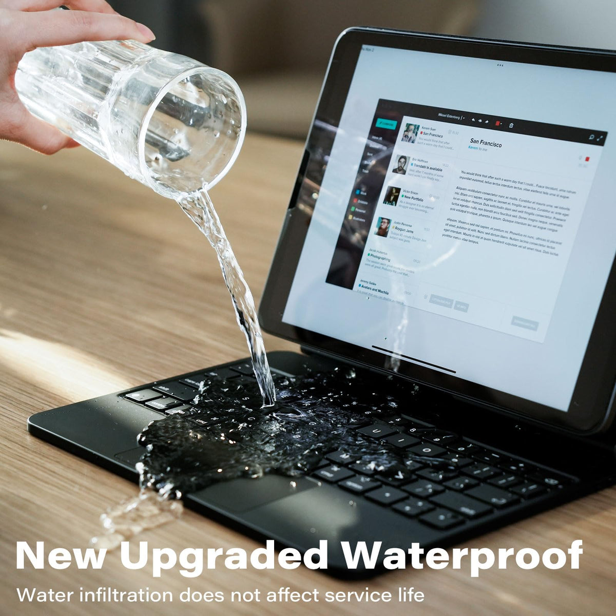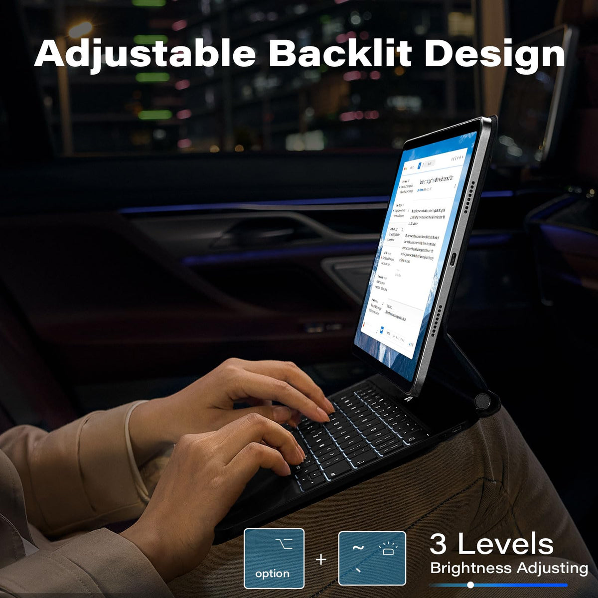 Q: Can I adjust the angle of my iPad while using this keyboard?A: Yes, the keyboard includes an Easy-Set Magnetic Stand that allows you to elevate your iPad to the perfect angle. Simply attach your iPad to the magnetic back cover, and the floating cantilever stand will adjust it seamlessly.