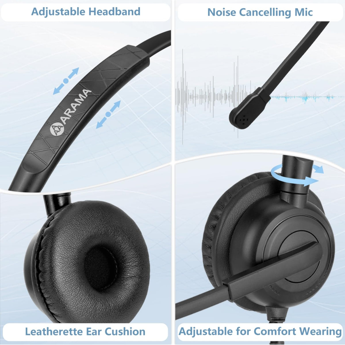 Arama Wired Monaural Headset With Microphone Noise Cancelling,Yealink Headset,Telephone Headsets For Office Phones,Headset For Phones Landline Office,Phone Headsets For Office Phones,Communication Headset,Rj9 Headset