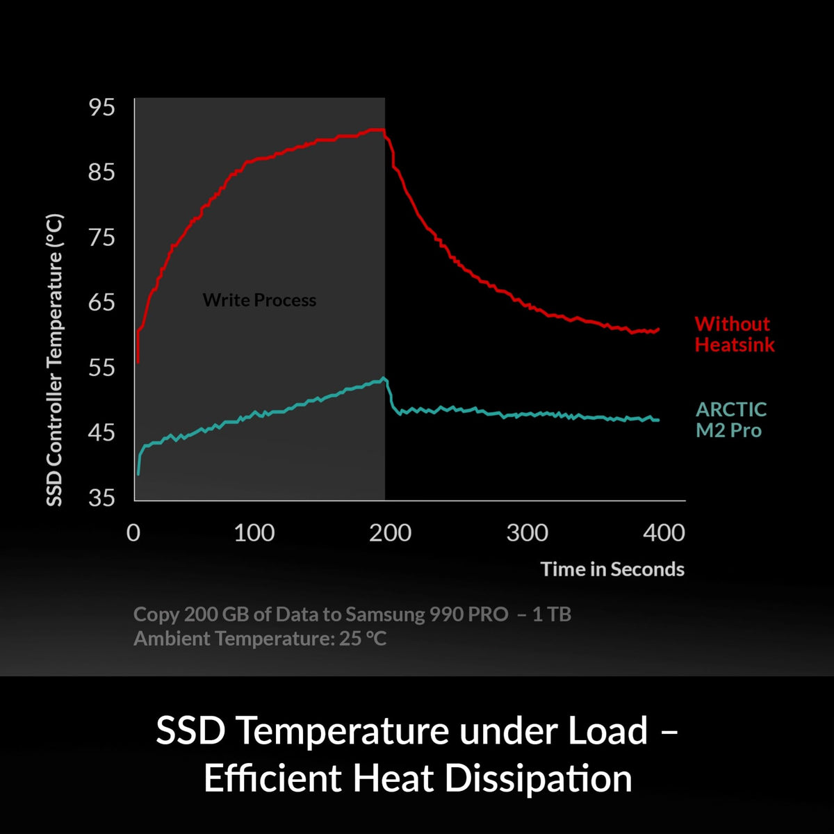 Efficient Heat Dissipation: Lower Ssd Heat And Faster Cooling. Thanks To Its Additional Mass, The Arctic M2 Pro Effectively Dissipates Heat And Transfers It To The Environment | Reliable Performance: The M2 Pro Allows M.2 Ssds To Work Efficiently And Achieve High Performance Even During Intensive Write And Read Processes. The Risk Of Thermal Throttling Is Reduced | Easy Installation For Single- And Double-Sided Ssds: No Screws Or Rubber Bands. Instead, The Nvme Ssd Is Fixed Between The Heat Sinks Using A Click Mechanism | Tp-3 Thermal Pads Included: The M2 Pro Uses Two Precisely Fitting Arctic Tp-3 Thermal Pads. These Adapt Perfectly To The Height Differences Of The Controller, Ram And Nand | Tp-3 Thermal Pads Included: The M2 Pro Uses Two Precisely Fitting Arctic Tp-3 Thermal Pads. These Adapt Perfectly To The Height Differences Of The Controller, Ram And Nand