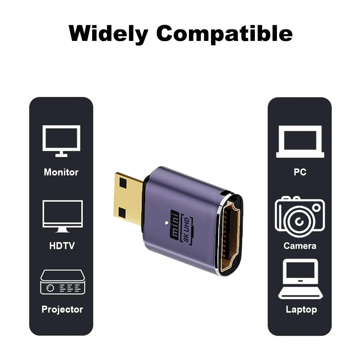 ?Mini Hdmi To Hdmi Adapter?This Mini Hdmi To Hdmi Adapter Can Easily Converts Mini Hdmi Port On Your Camera, Camcorder, Laptop And Tablet To A Standard Hdmi Interface On Hdtv, Monitor, Or Projector. ?Video Resolution Up To 8K?Supports Up To 8K@60Hz Video Output, Backward Compatible With 4K@120Hz, 4K@60Hz, 4K@30Hz, 2K@240Hz, 1080P@240Hz, 1080P@120Hz, 1080P@60Hz, 1080P@30Hz Etc. ?Ultra Durability?Ultra Thin Size, Ultra Compact Design, Durable Aluminum Alloy, Fine Appearance Details And Strict Quality Inspection Standards. And Does Not Require Additional Drivers And Software. ?Compatibility?Compatible For All Devices With Mini Hdmi Port. For Raspberry Pi Zero, Pi Zero W, Dslr Camera, Camcorder, Nikon D3200, Nikon D810, Sony Hdr-Xr500, Laptop, Tablet And More.