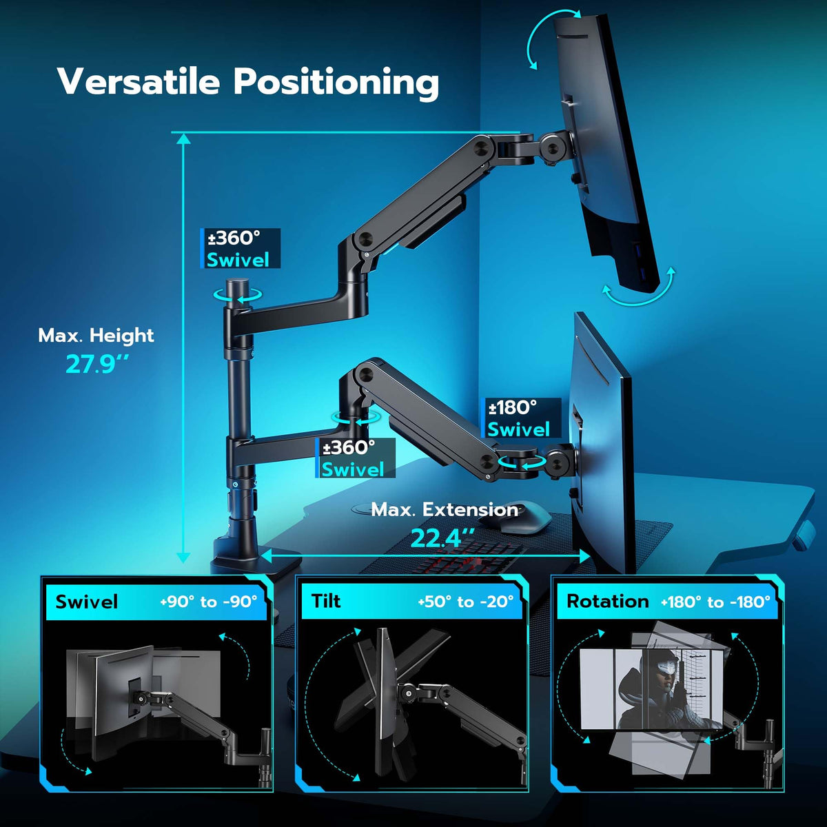The Ares Wing Dual Screen Monitor Mount Is The Ultimate Solution For Seamless Multi-Display Setups. Featuring Industrial-Grade Construction, Adjustable Height And Tilt, And The Ability To Support Monitors Up To 49 Inches And 44 Lbs, This Stand Delivers Unparalleled Performance And Flexibility, All Backed By A 3-Year Warranty And Exceptional Customer Support.