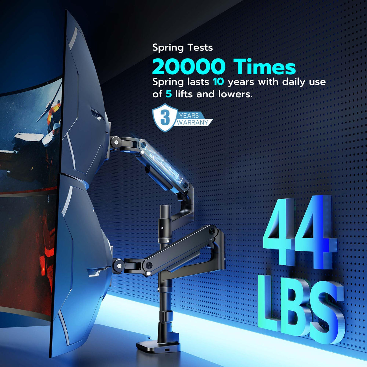 Ares Wing Dual Monitor Arm For Ultrawide Heavy Duty Curved Monitor Stacking, Fits 17 49 Inch, Vertical Gas Spring Double Monitor