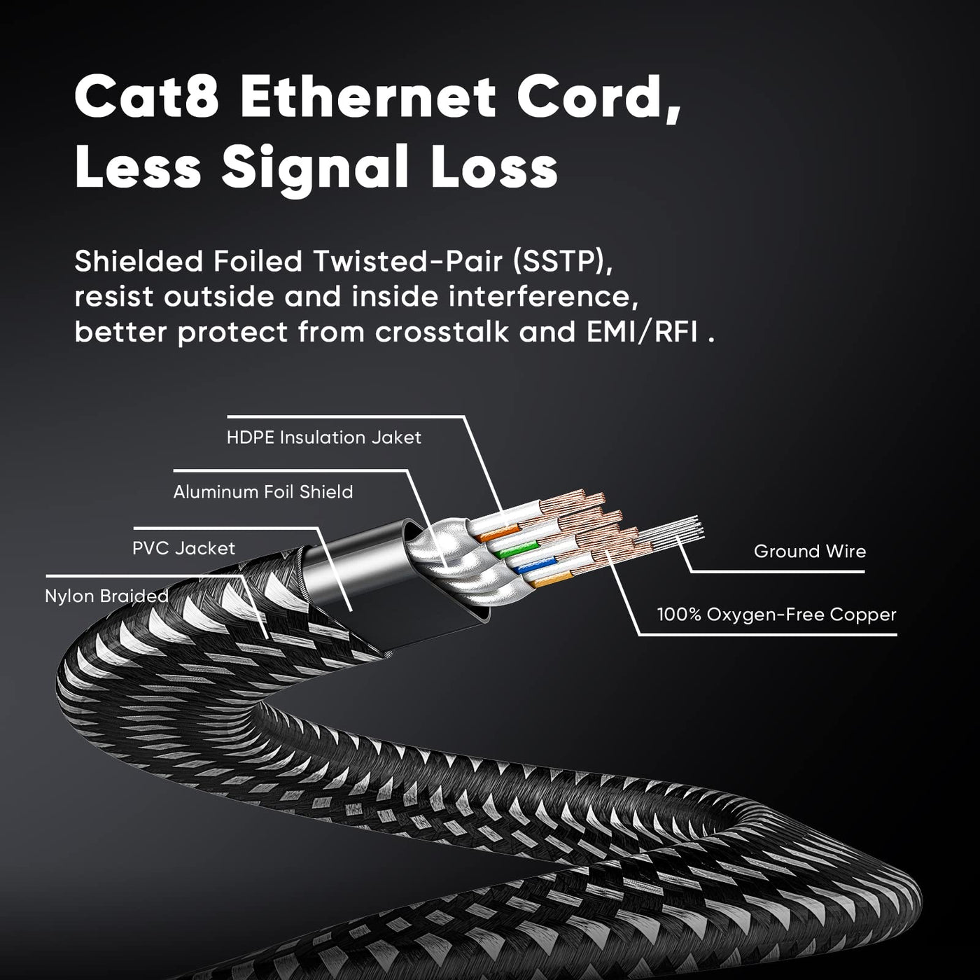 40Gbps 2000Mhz Ethernet Cable Cat 8 : Ariskeen Cat8 Ethernet Cable Provides Up To 40 Gbps Data Transmission Speed And 2000 Mhz Bandwidth | Excellent Anti-Interference : Our Cat 8 Ethernet Cord Are Made Of 4 Pairs Foiled Twisted Pair (Ftp) Copper Wires With 24K Gold-Plated Rj45 Connectors | Flat Cat 8 Ethernet Cable : Cat8 Rj45 Cable Adopts A Flat And Thin Design To Avoid Tangles And Save Space | Braided Design : Double Braided Nylon Exterior Make Cat8 Gigabit Ethernet Cable More Sturdy | Wide Compatibility : Cat 8 Internet Cable Provides Universal Connectivity For Devices With The Rj45 Connector