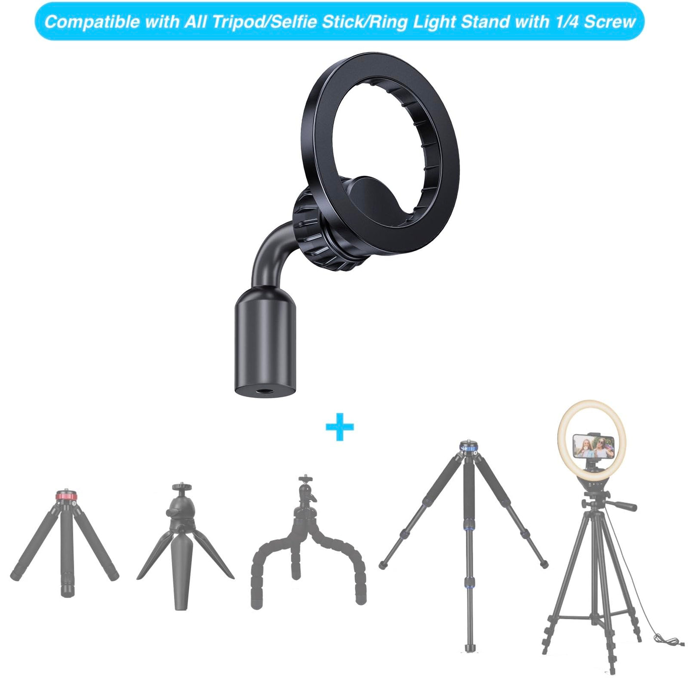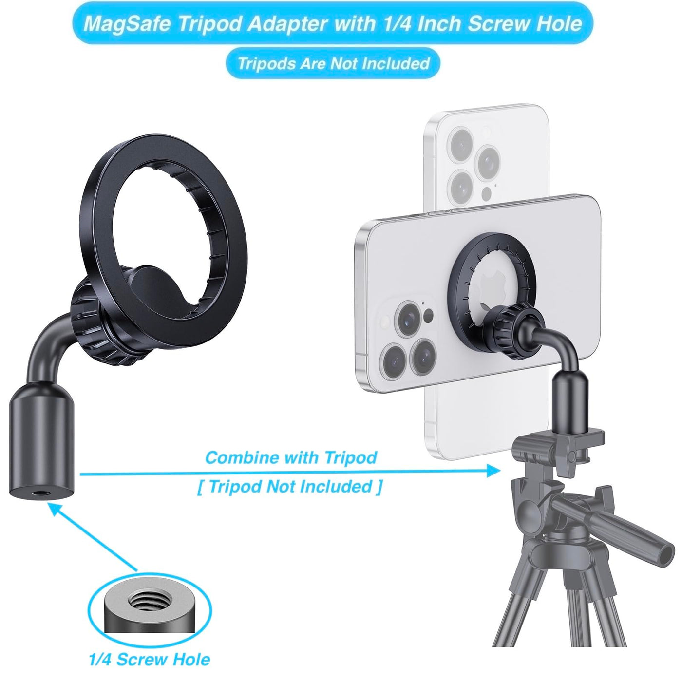 ??Magnetic Phone Tripod Mount Adapter For Magsafe With 1/4 Screw Hole???[Please Tighten The Fixing Nut Of Metal Joint Ball Before Using For Hold Your Phones Up] ?[The Adhesive Metal Ring Is For You Stick On Non-Magsafe Phones Or Cases] ??What You Will Get:Metal Iphone Tripod Mount X 1&Nbsp;Adhesive Metal Ring X 1[Tripods Are Not Included]??Facts You Need To Knowq1: Can This For Magsafe Tripod Mount Work With My Selfie Light Tripod Stand?A1: If Your Selfie Light Tripod Holder Build With 1/4 Screw, Then It Can Work, Because Our Tripod Adapter For Cell Phone Build In Standard 1/4 Screw Hole.Q2: Can This For Magsafe Tripod Mount Adapter Work With My Iphone 16/15 Pro Max?&Nbsp;A2: Yes, This Iphone Tripod Stand Adapter Not Only Can For Magsafe All New Iphones Directly, But Also Can Work With Other Phones With The Included Adhesive Metal Ring, Such As Samsung Galaxy S24 Ultra/ Galaxy A15 5G And Other Brands.??Please Explore More Using And More Fun By Yourself.