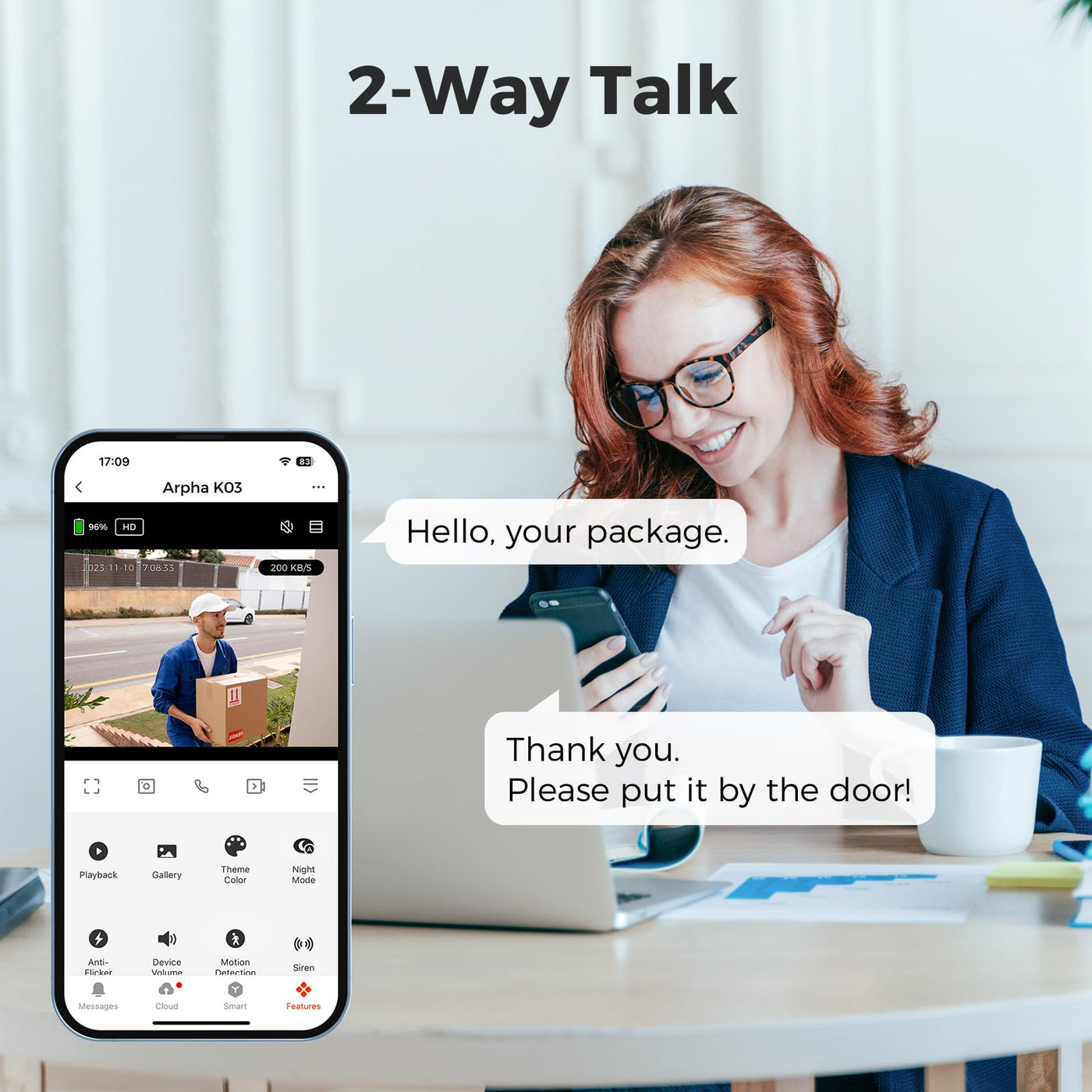 Arpha Wireless Outdoor Security Camera K03, 1080P Indoor And Outdoor Cameras For Home Security, 2.4G Wifi Camera With Ip66 Water