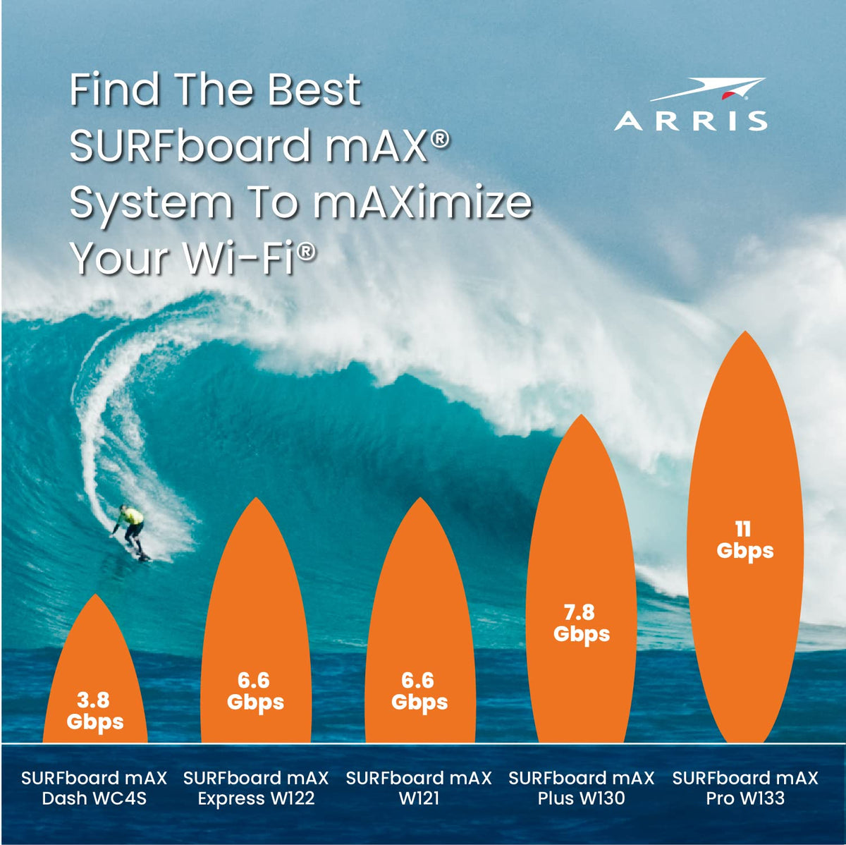Arris Surfboard Max W121 Tri Band Mesh Wi Fi 6 System, Ax6600 Speeds Up To 6.6 Gbps, Coverage Up To 5,500 Sq Ft, Alexa Support