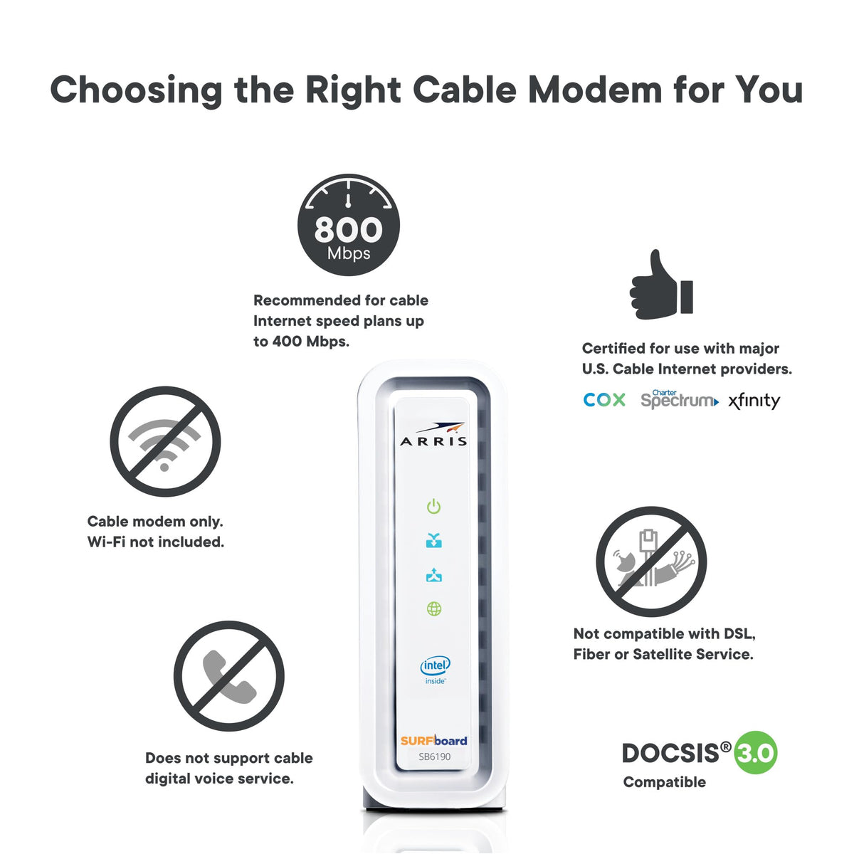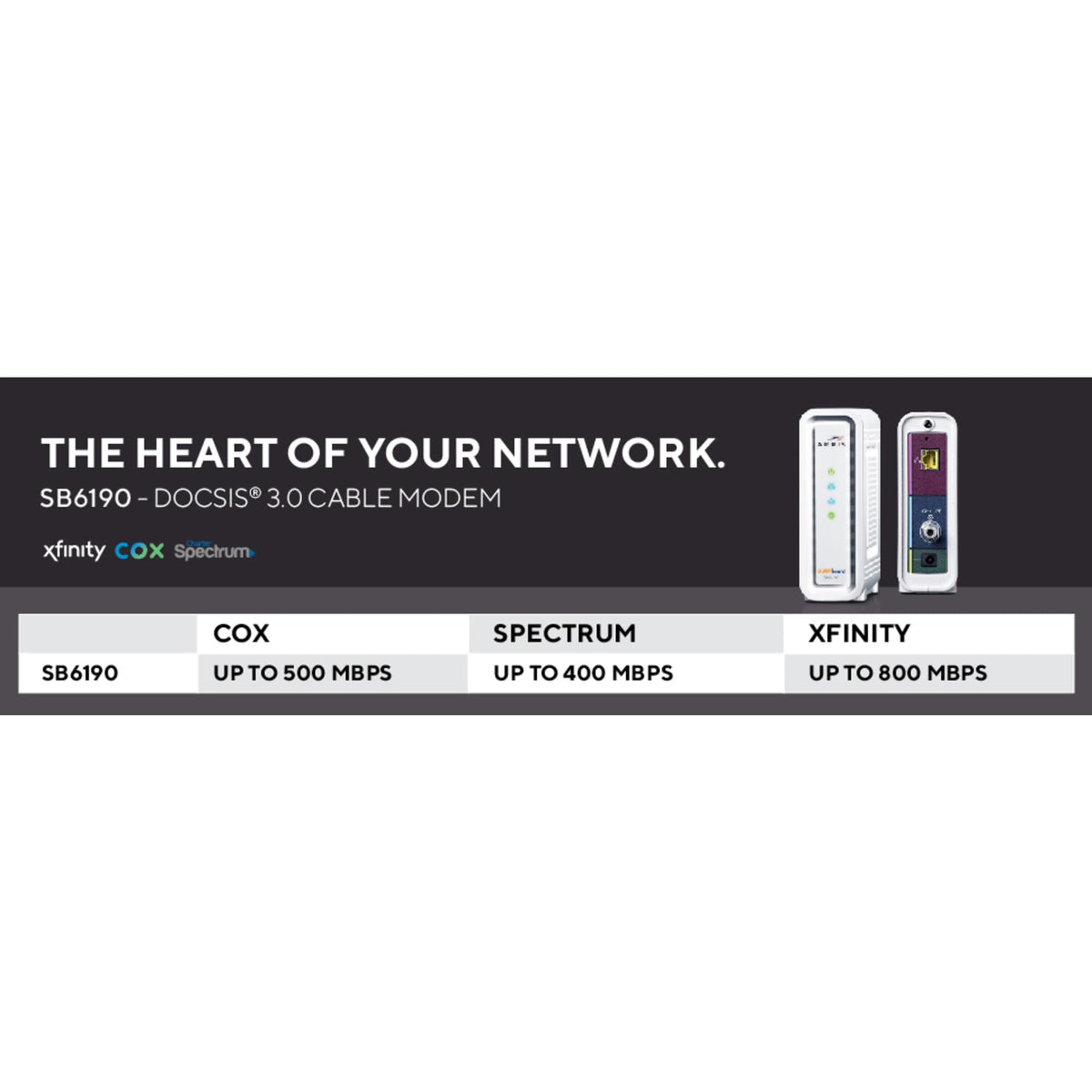 The Arris Surfboard Sb6190 Is A Docsis 3.0 Cable Modem With 32 Downstream X 8 Upstream Bonded Channels, Making It A Perfect Addition To Your Home Network. The Sb6190 Is Best For Cable Internet Speed Plans Up To 800 Mbps.