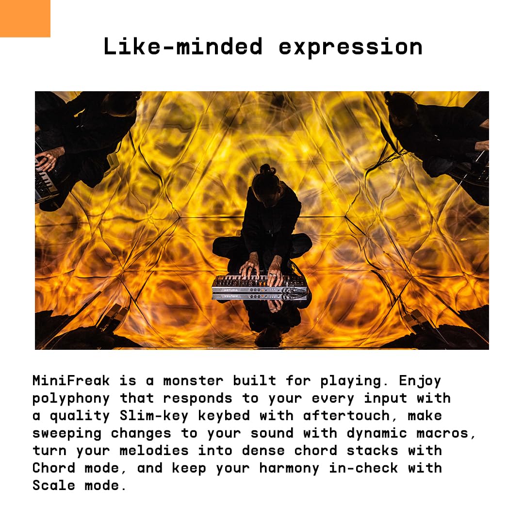 Minifreak Is A Polyphonic Hybrid Keyboard That Unites Dual Digital Sound Engines With Analog Filters, Playful Modulation, Instinctive Sequencing, And Rich Stereo Effects For Sounds That Are Immediately Curious, Beautiful, And Chaotic In Equal Measure.
