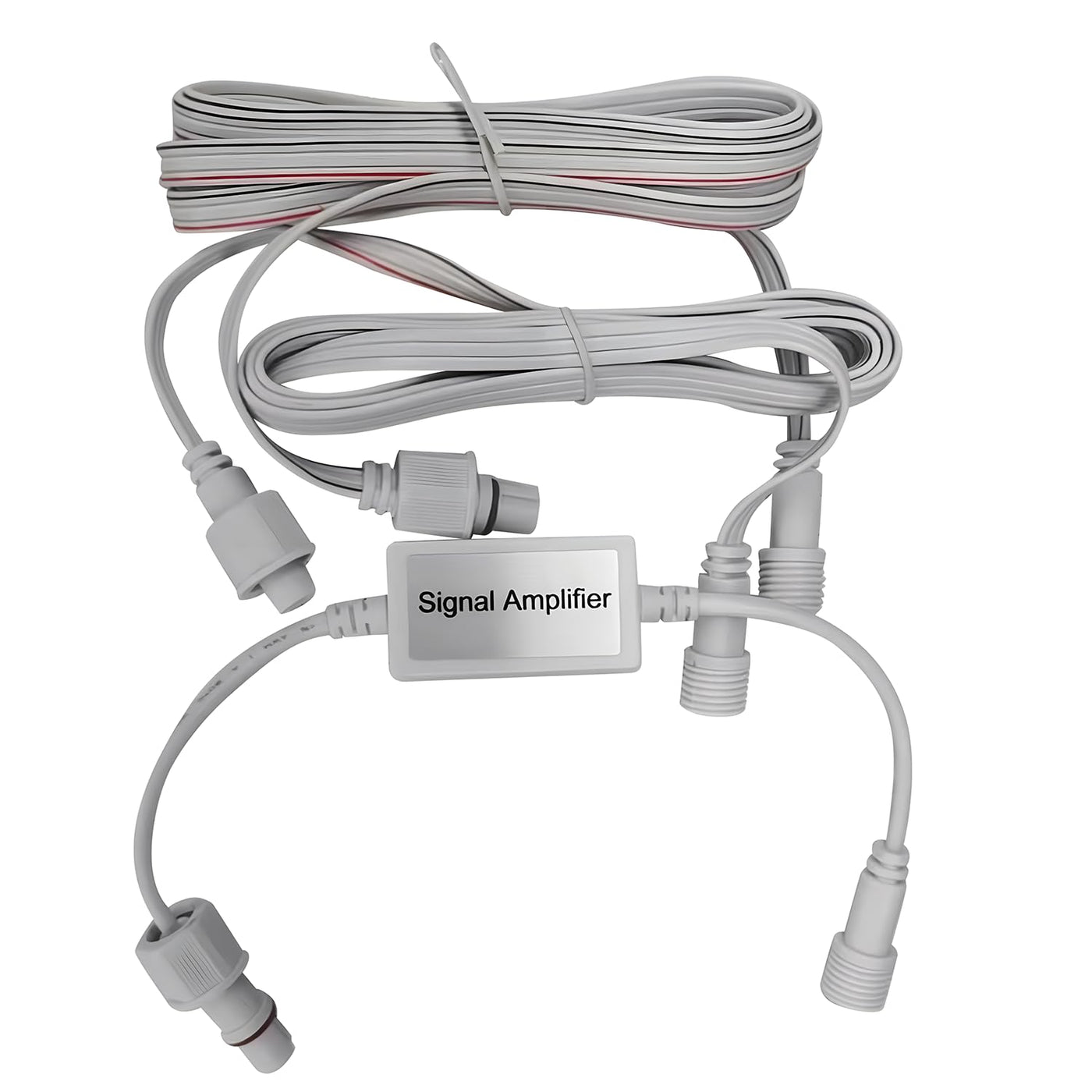 Q: How do I use the signal amplifier with the extension cords?A: To use the signal amplifier, connect it before the first extension cord. It's recommended to connect only up to 4 pcs of 6ft extension cords at the end of the signal amplifier to ensure signal stability.
